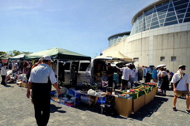 昨日に較べ昼頃になると暑くなってきた。咲くやこの花館は10時オープン。鶴見緑地出口で今日明日はフリーマーケットが開かれていた。せせらぎマルシェとやらも明日開催される。こんな催しは秋が合う。咲くやこの花館に行くと、なんと長蛇の列??……今日はいったいナンの日だ。係員に聞くと“今日は販売があるので…”。でもそんなんだけで並ぶのか。ケッタイな国民性というか付和雷同というか。入る気がなくなり池の袂でバニラストロベリーソフトをほおばる。この隣にも恐竜コーナー(入園料1000円)が造られていた。遊び方を知らない今のガキ連れはいいカモなんだろう。