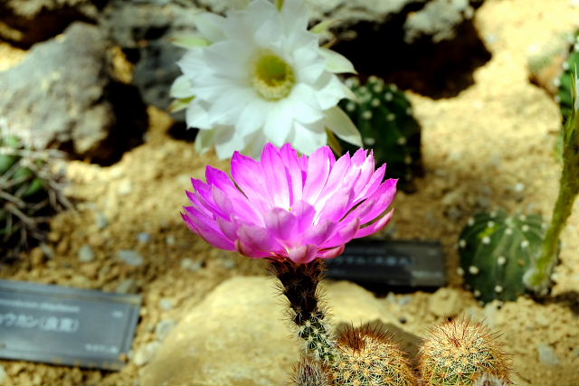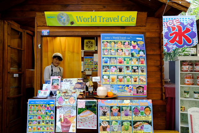少し経ってから咲くやこの花館に行くと列は収まっていたがスタッフがウザい。こんな些細なことに苛立っていた所為か晴天モードのバランスが赤方向にずれていた。自分で変えた訳じゃないのに何故なんだろう。苛つくと変な電磁波が出てくるのかも知れない。サボテン園辺りでおかしかったんだが気づいたのは高山植物園を出てトンネルに入った辺り。また高山植物園に戻り写しなおした。園内広場はそれらしきブースがいっぱい、人で溢れていた。喉も渇いてきたので ワールド・トラベル・カフェ でトロピカル・ドリンクを飲む。