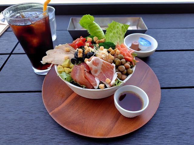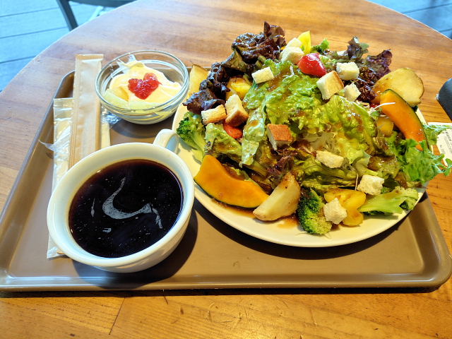 今朝もモーニングは何処にしよう、難波、心斎橋、京橋……どこも乗らんなあ。ワンパターンになってしまったけど鶴見緑地駅近くの ル・クロワッサン 鶴見緑地店 でサラダセット(680円)。道路側席に座り朝の一時。皿山盛りの野菜、1日分以上だな。