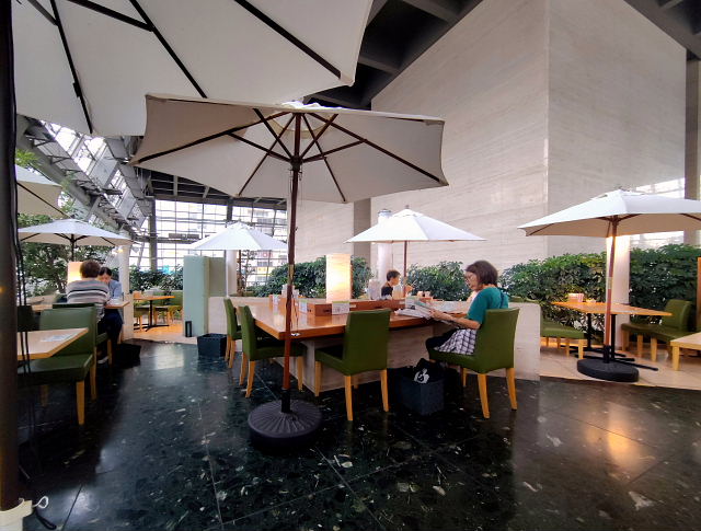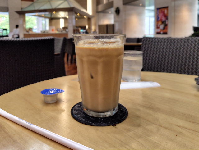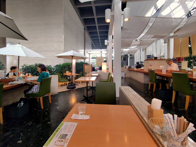 こんなドタバタがあったので家を出たのは10時前。これじゃモーニングは無理。順番を変えてジュンク堂(堂島)からにした。肥後橋から土佐堀川、大川の橋を渡り歩いていく。この辺りも外人さんが多くなっている。それ向きのカフェばかりが出来て昔の喫茶店はほぼ無くなってきた。堂島アバンサ1階の ロビー喫茶サリダ でアイスラテ。こんな空間も不思議と落ちつく。