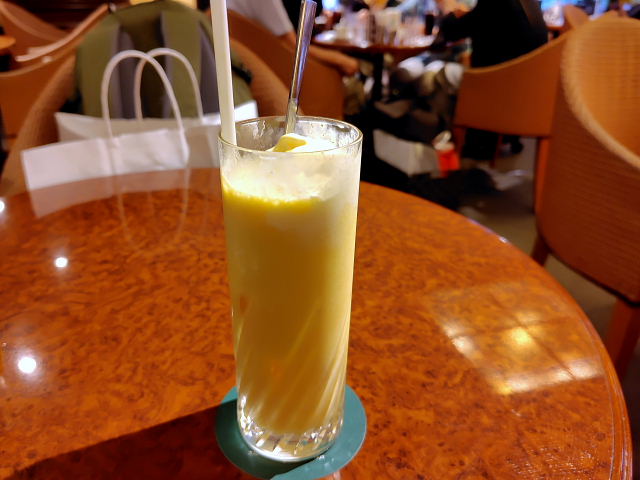 難波に帰り昼のティータイムは 英國屋難波本社2階のソファ席。ミックスジュース・フロートなんてのを飲んだ。北から南に帰るとホッとする。海外でも摩天楼が並ぶ所より迷路みたいな路地が入り組んだ所が好きなんだ。