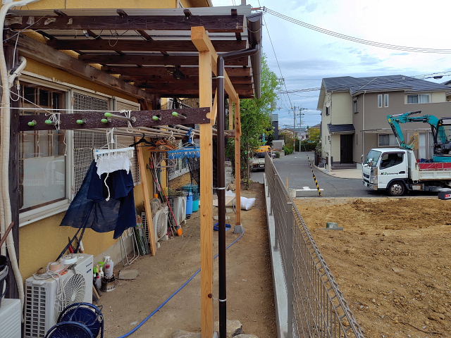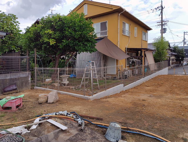 コーナンでターフ(3m×2m)と噴霧器、ネコ餌を買う。工事が終わると家周りの整備をせにゃいかんから此処にもチョクチョク来ることになりそう。家屋の解体は終わり、境界ブロックの基礎工事に入った。明日までが工事期限なんだが終わるんかな、洗濯干し場のトユ付けもまだ残ってるし1日くらい伸びそうな感じ。帰った時はマダ仕事中だったので次の朝に写した。