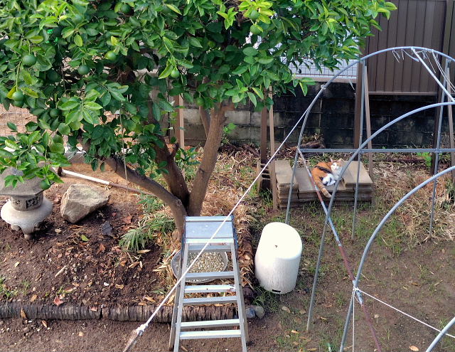 昨夜に自動給餌器を1日2回(朝6時と夕方6時)にセットした。実際試してみないと使えるのかどうか分からん。今朝はその時間に起きて確認することがマズ今日の仕事。外を見るとフーちゃん、ムーちゃんが仲良くブロックの上で休憩中(写す時は1匹だけになっていたが)。こんなことなら隣の敷地にあった大岩を2個ぐらい移しておくべきだった。でもその上で和むなんて思ってなかったんだから、邪魔になるだけだと。