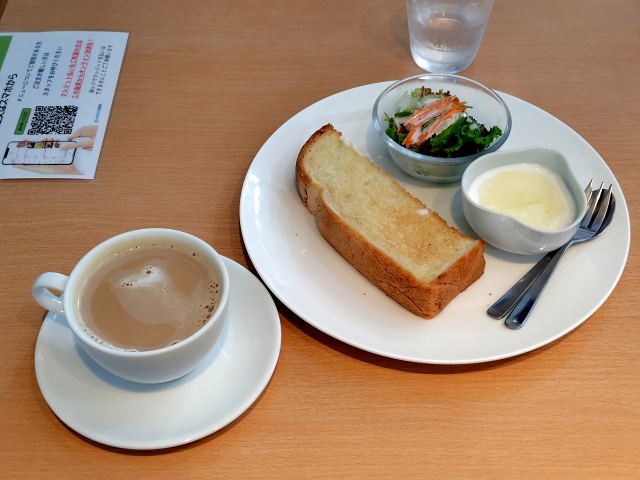 今日はどこでモーニング、難波や梅田ばかりじゃ面白くない。北まで足を伸ばすんだからその界隈でと江坂周辺を探すと駅前に 萠茶KIZASHI と言うカフェを見つけた。今まで江坂で入ったカフェはヒロコーヒー本店だけ。ここの味は良いんだが店の雰囲気が大丸(梅田)店ほどの優雅さがなくイマイチ好きになれなかった。今度の店は大同生命ビル内にあり写真の感じは良さげ。江坂着9時前。場所は2階、周りはガラス張り、フロアの一角だが洒落た造りだった。モーニングメニューはなく自分でトッピングする。バタートースト・ハーフにサラダ、ヨーグルト、カフェラテで700円。朝はこんな雰囲気の店が合う。ネット情報では土曜日は空いている、ようなことだったがマアマア入っていた。