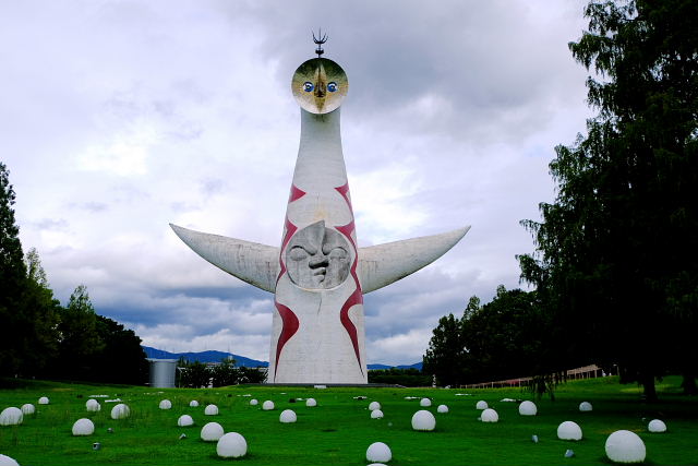 今どっかの埋立地でやってる万博とやらには全く興味がないけど、55年前のは活気がすごかった。自分は会場周辺でバイトをしていたが入ったことはなかった。妻は何回か入ったと言ってたなあ。その名残として今も圧倒的な存在感を持つ“太陽の塔”の内部見学に行ってみた。2018年から内部を公開し始めたとのことだったが入るのは始めて。あんまり期待すると失望が大きくなるので、マア一遍見てみるか程度のノリで。見学するにはネット登録する必要がある。10時から30分ごとに決められ1回16人限定。昨日見ると、今日は12時のだけ一人空きがあったのでゴー。もう少し早ければ他の所も見てみたいんだが中途半端な時間しか空いてなかった。送られてきたQRコードを入る時に見えるという最近のパターン。こんなのは嫌なんだが世の中がそっちの方向に進んでってるんだから合わせないとどもならんのだ。