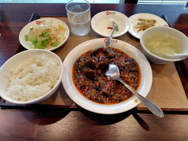 昼近くになっても続々人がやってくる。今日はナンか催しでもあるんだろうか。ランチは朝と同じく江坂で。始めはビーガン・カフェのつもりだったが、その手の店は予約する客が多い。オマケに今日は土曜日、マズ満席になってるだろう。他に何処かないかとグーグルマップを見ていると駅前のハートランド江坂3階に 蜀王府 とい四川料理の店があった。ここなら土日でも混むことはないだろう。1時前に着くとテーブル席はほぼ埋まっていたのでカウンター席に。今日の日替わり、Aランチは麻婆茄子、Bランチは酢豚。名物麻婆を味わいたかったからAランチ。味は酸味が勝り自分好み。昼も当たりだった。テー-ブル席だとなお良かったんだが。