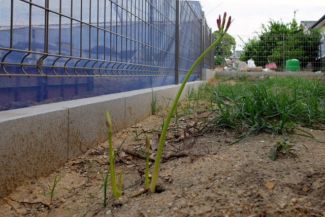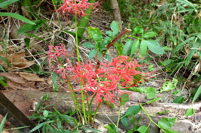 去年までは我が家の庭で彼岸花が咲く場所は6ヶ所あった。表山下さん側ビワの木周辺、イチバアちゃん部屋前、クスノキの周り、キンカンの下、ハッサクの下、三上さん側林の中。今年は隣の土地がなくなりこちら側も土をほじくり返してるから咲かないだろうと思っていた。