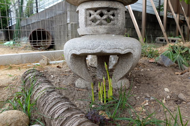 旅行から帰り庭に出ると、ナンと咲いてる(これから咲くのも含めて)所が3ヶ所もあった。いつも一番早く咲く三上さん側境界辺りには固まって咲いていた。後2ヶ所はまだこれからだが、ハッサクの木の下に移した石灯籠前に10株、境界フェンス前に4株ほど。丁度ここは楠の木の下辺り、これだけ土を掘り返してるのに意外としぶといんだ。