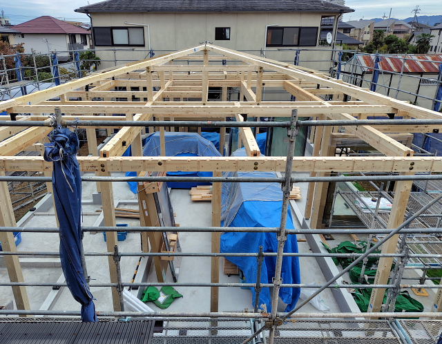 隣の家の基礎工事が終わったと思うともう家の脇組が建ってきた。今時の建物は棟上げなんかするんかなあ。この後が長く掛かる。昨日は水道料金のことでアタフタした。異常な請求額で業者に連絡はしたが、工事だけであんなにしたのかどうか分からん。でもこちらの水漏れにしては高すぎるし。