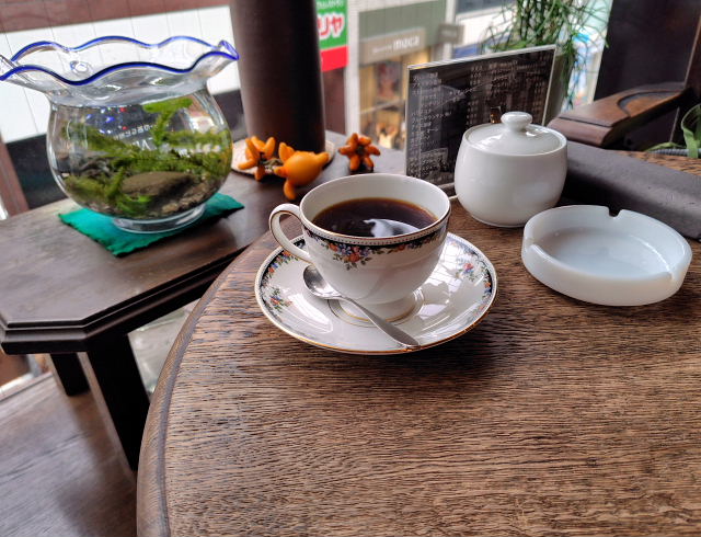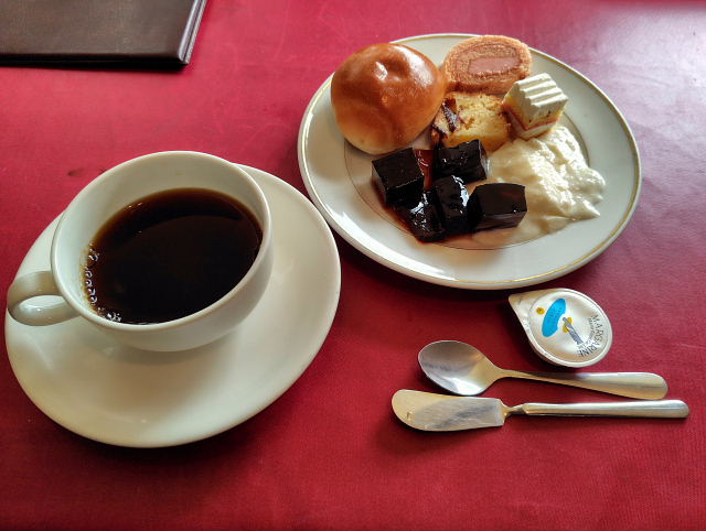 コーナンで買物する時は 桜珈琲三国ヶ丘店 でモーニングというのが定番になっている。平日の8時台はガラ空きで好きな所に座れる。今日は簡単なトーストモーニングにした。カップはしぶい絵柄(ノリタケ製)を選んだ。ここは4人席をユッタリ占領出来るので落ちつく。コーヒー(今日のはコロンビア)も料理も美味い。