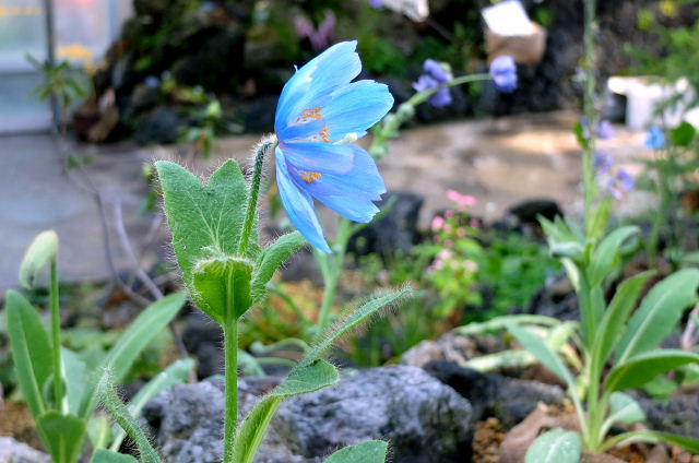 咲くやこの花館の年間パスを持ってるので来る度に入ってるけど別段目新しい花もない。蘭、サボテンの花を見ながら高山植物園エリアに入ると青いケシが咲いていた。他は……。今日はコスモスがメインだったからこちらの方は気が乗らない。