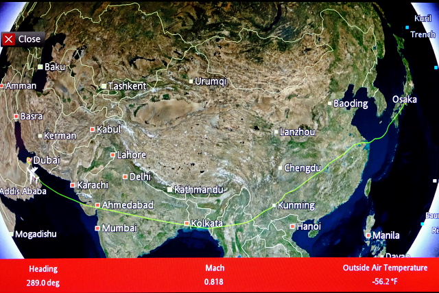 今回は久しぶりのロングフライト、20年前キリマンジャロに登った時、KLMでアムステルダム経由ナイロビまで飛んだ時以来だ。当時はまだ体力もあったから連続二夜行フライトでも大丈夫だったけど、今はトイレも近くなりとても無理。初めての所だし高くつくけどビジネスクラスにした方が安心だ。何処のフライトにするか、時間が一番早いのはイスタンブール直行のトルコ航空(B787)。経由便だとバンコク経由のタイ航空(B777→A350)、ドバイ経由のエミレーツ航空(A380→A380)、ドーハ経由のカタール航空(A350→A320)、シンガポール経由のシンガポール航空(B787→A350)などの他航空運賃が激安の中国系エアライン(大体はA320→A330)がある。長時間飛ぶんだから狭い機種より大きい機種の方がイイ、となると2フライトともA380のエミレーツ航空になってしまう。以前1回だけタイ航空のA380に乗ったことがあるがその時はエコノミーだったので2階席は分からなかった。エミレーツ航空のは2階席全部がファースト、ビジネスクラスで上階後方には機内ラウンジもあるとのことなので是非乗ってみたかった。今回、大阪~ドバイ~イスタンブール往復で計4回乗ってみてその居心地の良さを満喫した。機内食もフルフラットシートも言うことナシ。行きの飛行経路は昆明~カルカッタ~アーメダバード~カラチ~ドバイ。帰りも同じ経路かと思いきや内陸部ばかりのルートだった。カブール~カラコルム山脈~タリム盆地~北京~ソウル~大阪。ヒマラヤ(カラコルム上空)を飛ぶなんて知らんかった。ドバイからイスタンブールの経路は行きも帰りもドバイ~ペルシャ湾~バスラ~バグダッド~キルクーク~トルコ内陸部~イスタンブール。中東の紛争地帯でも民間航空機は普通に飛んでるんだ。