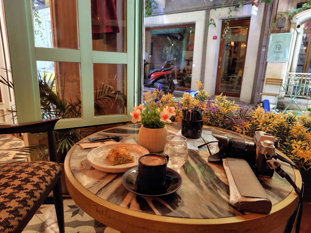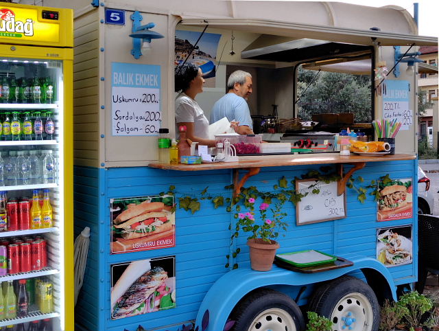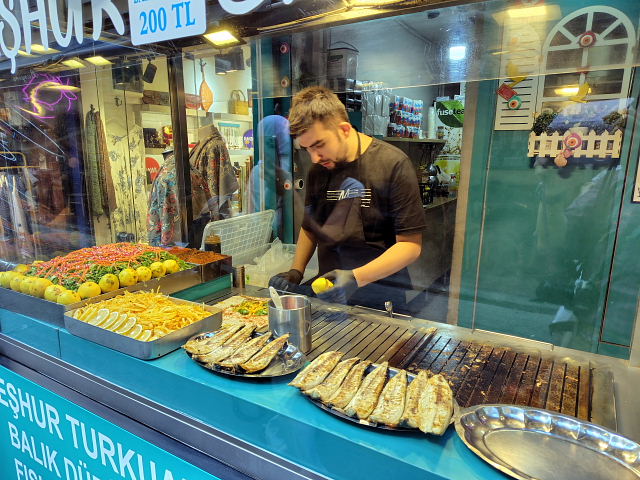 カフェなど。タイでは美味しいコーヒーばかり飲んでいたがトルコではチャイばかり。ターキッシュ・コーヒーは粉っぽくて好みじゃない。帰り際になって飲んだザクロ・チャイが美味かったので、もう1回飲みたかったがメニューがある店がなかった。イスタンブールではコーヒーよりチャイの方が景色に合っている。トルコでフルーツとなるとザクロ。何処に行っても果物屋台ではザクロ・ジュース(ナル・スユ)がある。何回か飲んでみたが味は……我が家にあるザクロジュースと変わらんなあ。スイカジュースもあったので試したら美味くない、ウォーターメロン・ジュースは東南アジアに限る。フルーツはブドウが豊富で安かった。他にはりんご、オレンジ、スイカなど日本と同じでマンゴー、マンゴスチンなどのトロピカルフルーツはなかった。