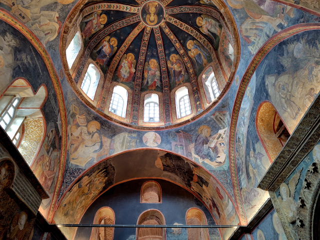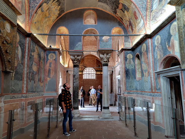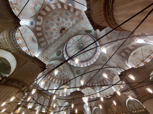 イスタンブールを始め各地にあるモスクだが、外観も内観もよく似た造りでたくさん見て回るとどこのだったかサッパリ分からなくなる。仏教寺院のような人間臭さが全くなく装飾は幾何学模様、色彩もステンドグラス以外はモノトーンで明るくない。イスラム教よりキリスト教の方がまだ人間味があるように思える。あんまり好きじゃないのが分かった。景色の一部としてファインダーに入ってるのは良いけど。夜のブルーモスクとフレスコ画で有名なカーリエ・モスク、他のは……。