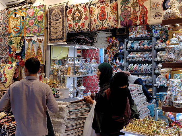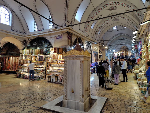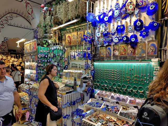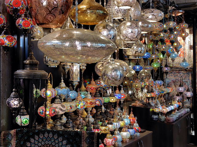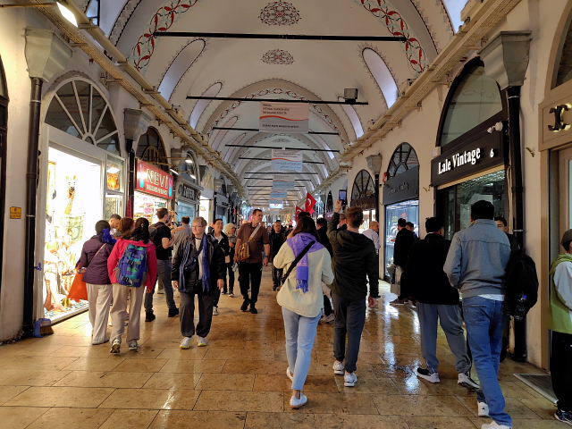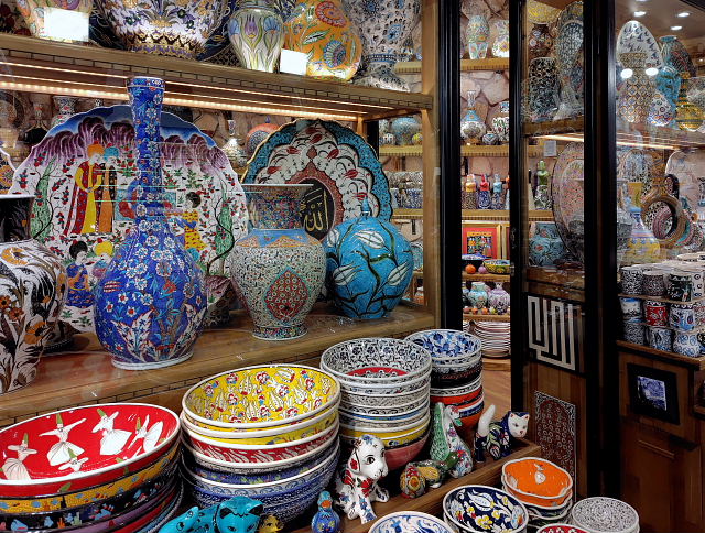 トルコといえばまず思い浮かぶグランド・バザール。自分が持っているイメージと合うかどうか見てみたかった。イスタンブールに戻った次の日(日曜日)に行くと……日曜定休日で門が閉ざされていた。????、今までいろんな市場を見てきたけど日曜定休なんてとこがあったかいな。おまけにここは観光名所、そんな所が休日に休むのか。普通の市でもあんまり聞かない。行く前から違和感。次の日に出かけると入口から大勢の外人観光客の群れ。金属探知機みたいなゲートを通らされ(これも変な感じ)中に入ると、ネット世界にあふれている光景があった。でもネットでは声も臭いも分からない。これまで行った市場(バザール)では、分からない現地語が飛び交い、充満するお香の臭い、動物の鳴き声、こちらを見つめる目などに取り囲まれた。でもこのバザールには臭いがない、聞こえてくるのも英語、フランス語などの旅行者言語ばかり。偶に“ニイハオ”なんて声もかけられる。日常生活の店はなく貴金属、陶芸品など外人観光客相手の店がほとんど。バザールの格好をした巨大な迷路状ショッピングセンターに放り込まれた感じなんだ。少しだけ土産用に小鉢を買ったが、外で買うより3割増しの価格。楽しむ雰囲気じゃなく早く外に出たくなった。