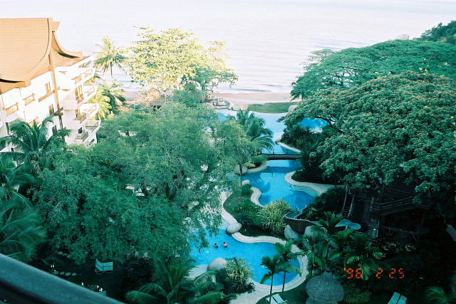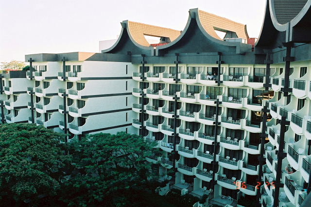 ジョージタウン市街を通りバツーフェリンギ、タンジュンブンガを過ぎると道がクネクネしだした。詞子が吐く一歩手前でラササヤン・ホテルに着いた。8階建新館は本館(メインウィング)と同じ造り。真下に庭園、プール、海を見下ろし高度感抜群。ホテル周囲の木にはクリスマスツリーみたいな照明が吊されていた。これは正月期間だけという。今回の7人の内、ガーデンウィングは我々2名だけ、メインウィングが3名、ムティアラ・ビーチが2名とグループずつ別れていた。両替を20000円、これもホテルの儲けになるんだろう。