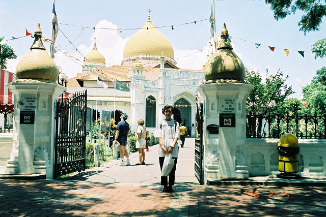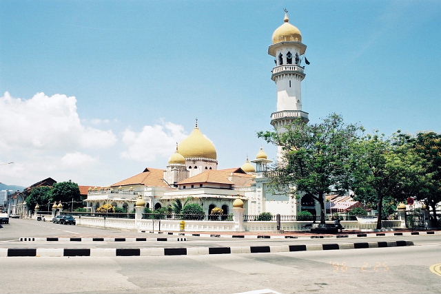 なんとかチュリア通を南東に下りカピタンクリン・モスクの前に出た。クリーム色のドーム(モスク)が美しい建物だ。ムーア様式というらしい。頭の上からコーランの声が聞こえてきた。時間は1時半か、ビジターの案内板に沿って受付に行くと閉まっていた。ムスリム達がポラポラとムスクに入っていく。看板前で引き返した。