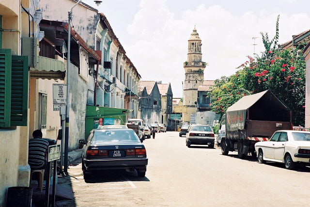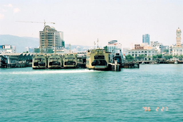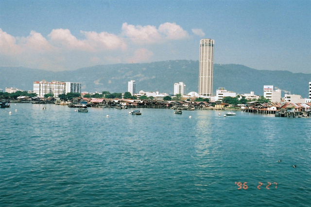 ペナン島着。ほとんどの乗客はバスに向かう。こちらの格好から一目で外人と分かるのだろう、タクシードライバーが声を掛けてくる。サンダル履きばかりで靴履いている人間などほとんどいないんだから。時計台かなと思っていたのはウィスマ何とかという西洋風ビルだった。