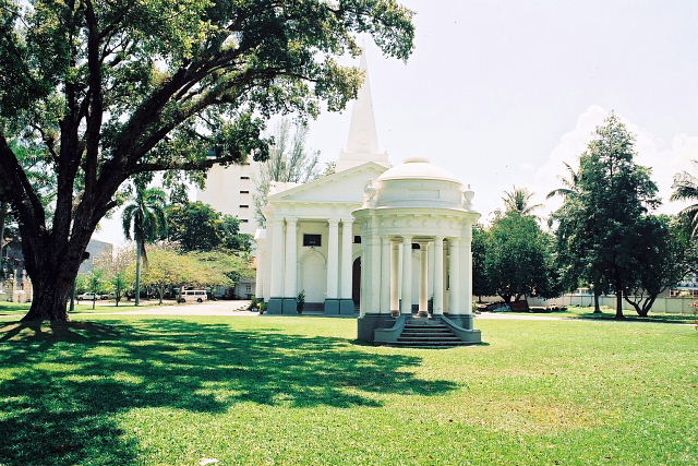 食後は皆と別れて自由行動するというと誓約書を書かされた。向こうの規則だからまあシャアない。ヤオハンの本屋で蛇の本を探してからジョージタウン観光案内所でシティマップ(1RM)を買い市内探索。陽差しはそうでもないが歩いていると汗が滲んできた。バス発着所のコムター下から地図の通り歩いていくと何やらおかしい、目の前にイースタン・オリエンタルホテルが見えている??。この地図は観光用で正確な地形を表しているわけじゃなかった。