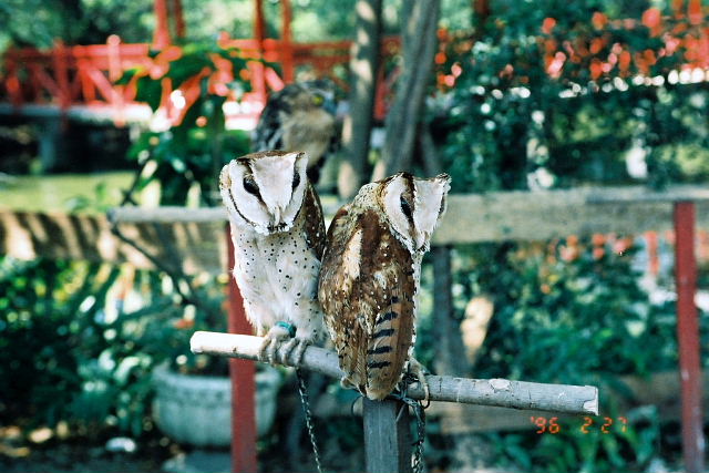 この炎天下を歩くのはキツいし、向こうのタクシーはないらしい(本当かどうか分からんが)。タクシー料金は市内10RM、市外は15RMと決められているようだった。歯小渡・博入園料4RMにカメラ代1RM。ここも中国人(系)が多い。広大な園内にダチョウ、キーウィ、ペリカン、フクロウ、ミミズク、オウム、コンゴウインコ等々、詞子はムチャ狂喜。1時間タップリ掛かった。出口の売店でペーパーナイフ、ブックフォルダー(10RM)を買う。マンゴーアイス(1RM)も一つ。周りは高級住宅地風ニュータウン。