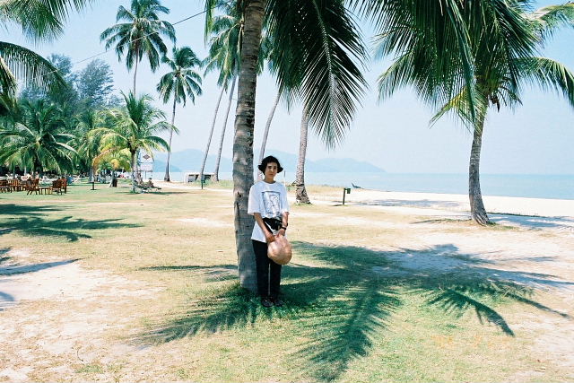 椰子、イチジク、バナナが茂る車道をブラブラ歩いて帰る。20分ほどでテロク・バハンに着いた。ムティアラ・ビーチ・ホテル前の浜は泳げそうだったが宿までまだ5kmあるし、もう12時半、腹減った。途中で食べようと探したが中華以外のレストランは全部閉まっていた。夕方オープンの所ばかり。舟形レストランは開いてたけど内容がイマイチ。結局ラササヤン・ホテルまで食べずに歩いてしまった。バタフライ・ファームから7km、ジャングル・ウォークなみの距離だ。フェリンギビーチ・レストランも準備中だったからコーヒー・ガーデン。ビール、サテー盛合せ、生野菜。アーモンドソースが美味い。値は高め、トータル44RM。ここはインド系スタッフが多い。