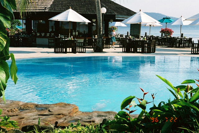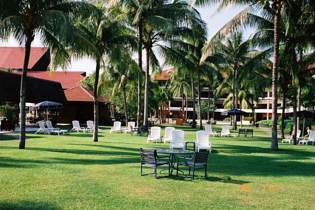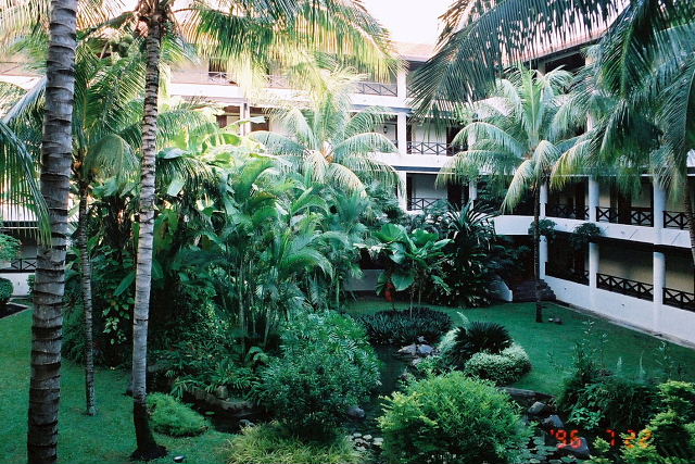 体が塩っぽくなってきたのでホテルに帰りプールで汗を流す。こっちはガキが多く五月蠅くてかなわん。水に浸かると爽やかになるのはイイんだが、タオルを借りるのに毎回貸しだしカードみたいなのを渡さないとアカンのが子供くさい。ラササヤンみたいな大人のホテルだとすんなりいけるのに。木彫アームチェアーで一休み、プールバーで昼の食べ損ね分をとサラダとジュース。味はマアマアか、やっと落ち着いた。外人夫婦と子供連れが多くアジア人団体さんは影を潜めている。昼は何処に行ってるんだろう。