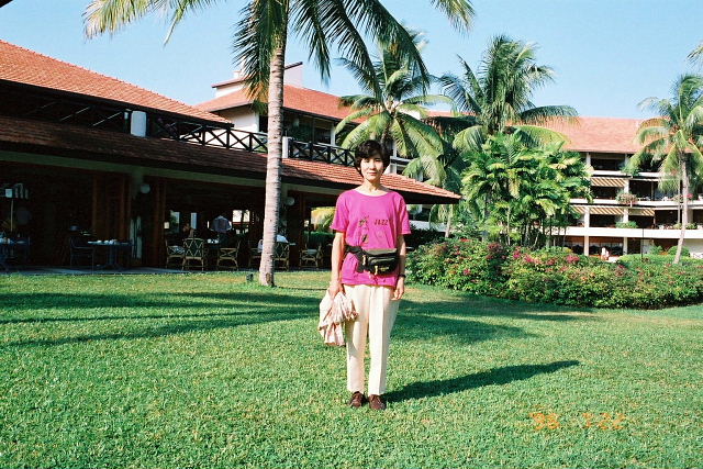 帰りもタクシーでホテルまで帰る(10RM)。プールと海で一泳ぎ。ものすごく遠浅の海だ、日本じゃすぐにストンと深くなる海ばかりだからなあ。首と脚がヒリヒリしている。帰ってロビーでハイティー・セット。アイスティーにスコーン2個(ジャムとクリーム)、ミニサンド3個。昼食にしても充分。詞子はシャーベット3個セット、これも美味い。