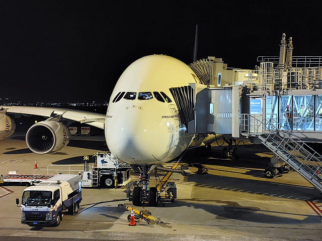 今回で3回目の搭乗となる現在世界最大のエアバスA380。何処から見てもドデカい。前はタイ航空のバンコク行で乗ったことがある。その後騒動でタイ航空の屋台が傾きA380は全機身売りされてしまった。やっと経営危機も脱したとはいえもうこの機種を飛ばせるほどの体力も気力もないだろう。どのエアラインも効率重視でこんな非効率機種が何時まで持つのかも。飛行場の能力(滑走路の長さ)も条件になるから、日本では成田と関空だけ。横のゲートにはフィンエアーのA350が駐機していた。