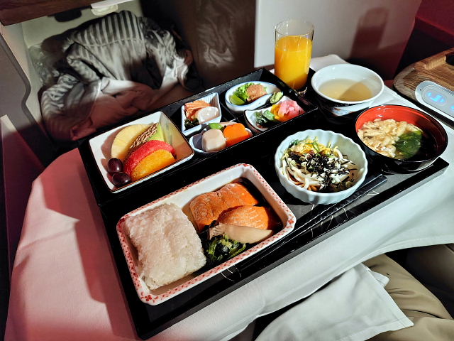 朝食は昨夜チョイスしておいた懐石弁当。これも美味い、ずっと昔シンガポール航空の懐石弁当を食べたことがあるが、それよりはズッと美味い。機内食のレベルも相当なもんだ、何時もエアライン・ランキングの上位になるハズだ。でも食い過ぎになるなあ。