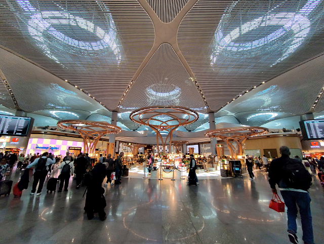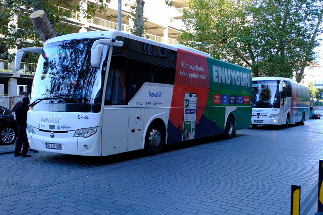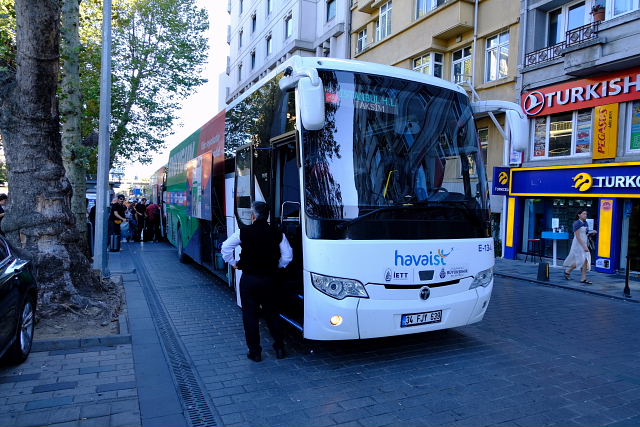イスタンブールまでの飛行経路はペルシャ湾~バスラ~バグダッド~キルクーク~トルコ東部~イスタンブール。飛行時間は約4時間。イスタンブールに近づくと時間調整なのかその周辺をグルッと回り出した。空港が混んでるんだろうなあ。出だしで遅れ、到着前もこんなことしてたから1時間近く遅れてしまった。ビジネスクラスでも優先レーンはなく普通客と同じレーンに並ばせられる。人気空港なんだ物凄い行列だった。空港バス(ハヴァイスト)の発着場はエレベーターで地下2階まで降りる。
