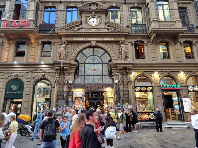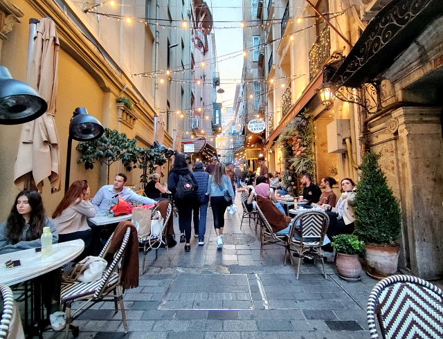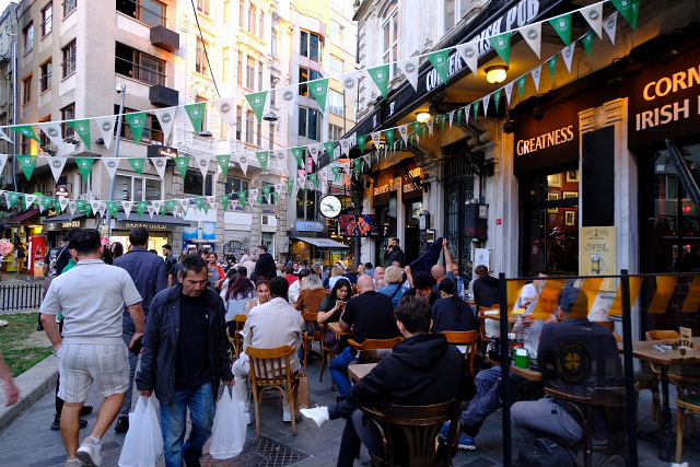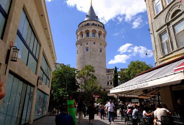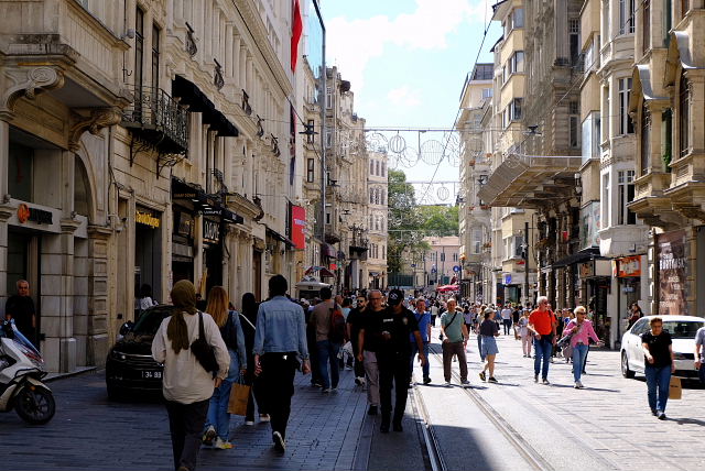 もう1ヶ所回ろうと思っていたモスクも閉まっていた。今日は3ヶ所見たから充分なんだ。ガラタ橋までは行かずUターンしてガラタ塔に向かう。この道も急坂で喘ぎながら登る。タイみたいにムシ暑かったら途中でダウンするだろう。ガラタ塔入場料はバカ高いから見るだけ。トラムが走るイスティクラール通は何時も賑わっている。これだけ観光客が集まっていてもトルコではオーバーツーリズムなんて言葉は聞かれない。ケチ臭いどっかの国との違いは受け入れ容量の差か。