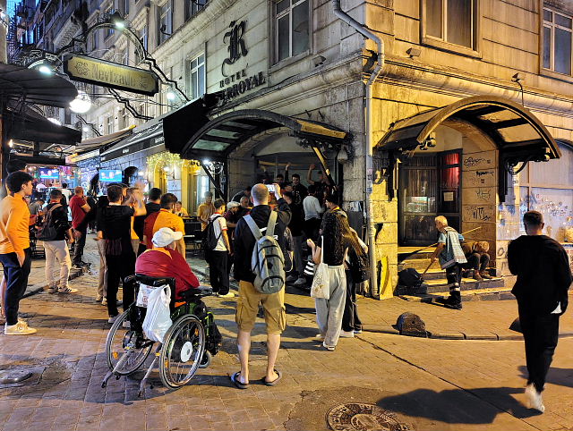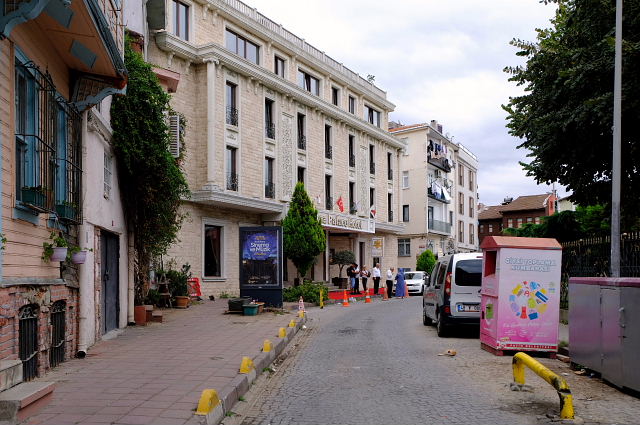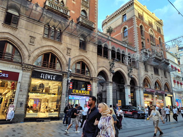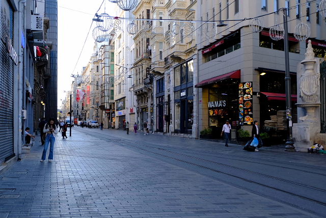 さ~てどこで両替しようか。空港のレートは見てこなかったけど悪いのは分かってる。バス停から少し歩いて脇道に入った辺りの店で50ユーロ(2400TL)、イスティクラル通の店で20000円(5440TL)両替した。ここが一番レートが良いようだった。表の表示板に日本円がないところも多い。聞いたら大丈夫なんだと思うけど、その店にとっては日本人は上客じゃないんだろう。日本で言うほどトルコに行く人は多くないんだ。新市街の目抜き通だけあってメチャ人が多い。トラム軌道の横を歩くんだがイスタンブールの街は坂ばかりで平たい所がない。今日のホテルはタクシムより下で荷が重い時は楽。通りの両側に石造りの建物が並び雰囲気がある風景を醸し出している。