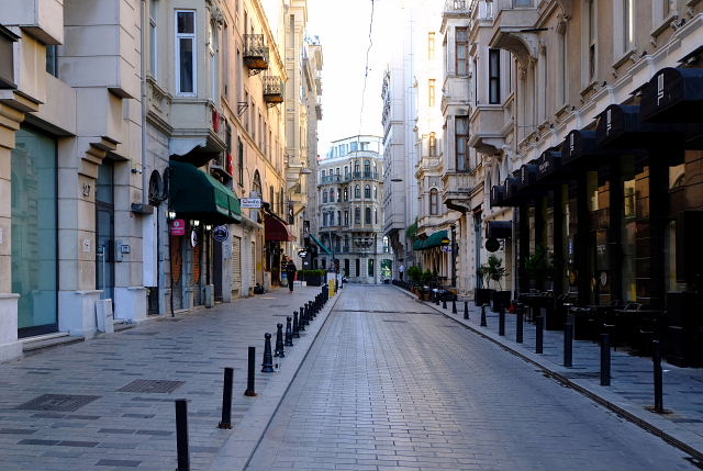 まだ暗い早朝のイスタンブール市街。人も少ないだろうと思っていたが大違い。若者達、観光客がワンサカいた。日本でこんな時間なら“シ~ン”だけど国際観光都市は全く違う。24時間こんな様子なのかも。タクシーもいっぱい走っていた。他の国だと朝早くにタクシーを捉まえられるか、なんて心配したもんだがここではノープロブレム。こんな光景はこの時間に歩かないと分からない。夜は適温だったし朝もヒンヤリして歩いていても汗をかかない。