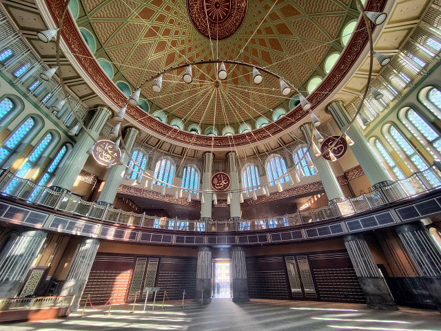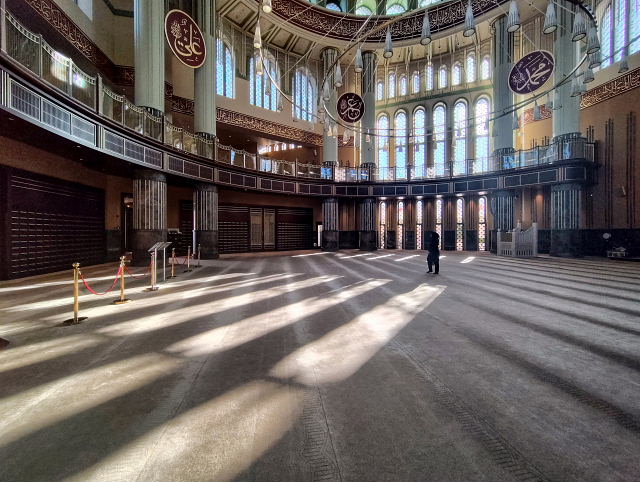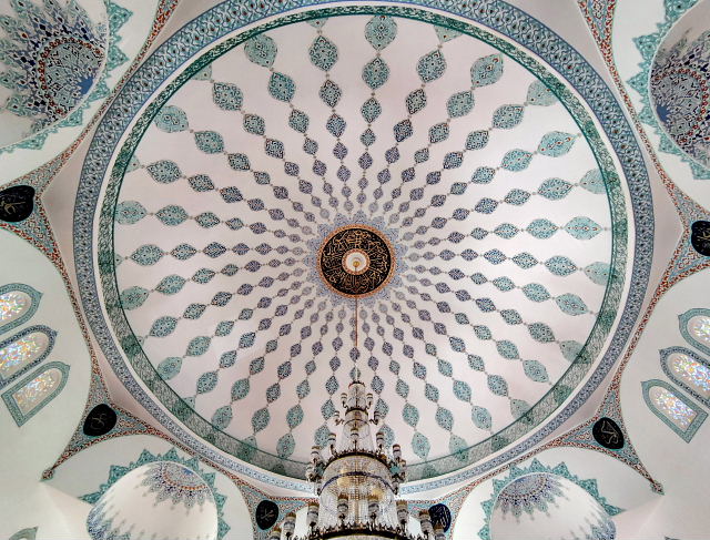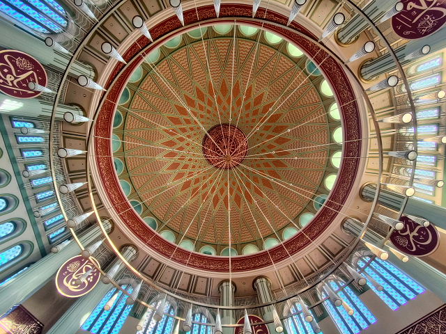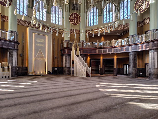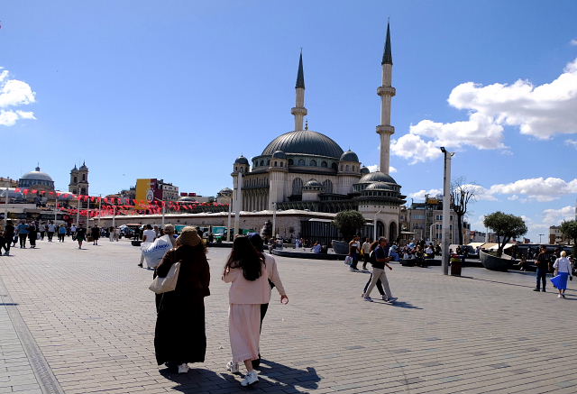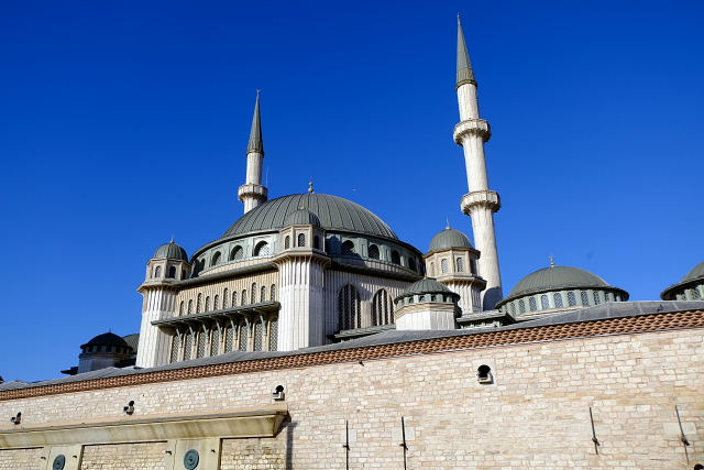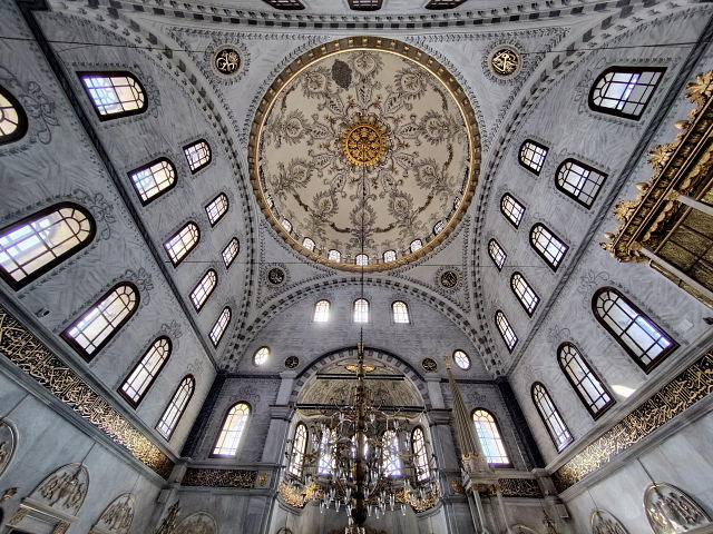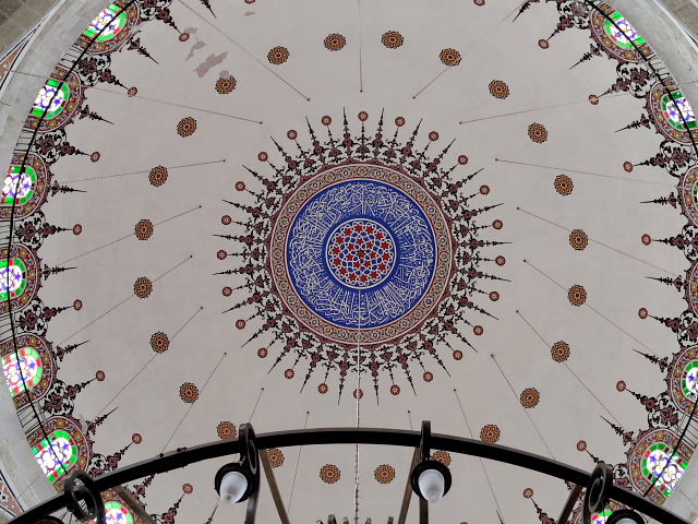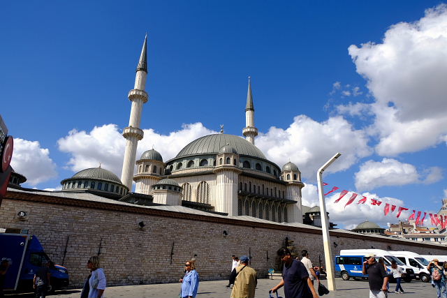 まず最初はTaksim Camii(タクシム・モスク)から。広場前の一番目立つ所に建っている。中に入るとまだ観光客、礼拝の人は誰もいず掃除の人がいただけ。イスタンブール(トルコ)で最初に訪れたモスクだからインパクトがある。幾何学模様みたいな装飾、見事な天井、色彩は少ないけど素晴らしい。新市街ではここが一番かな。