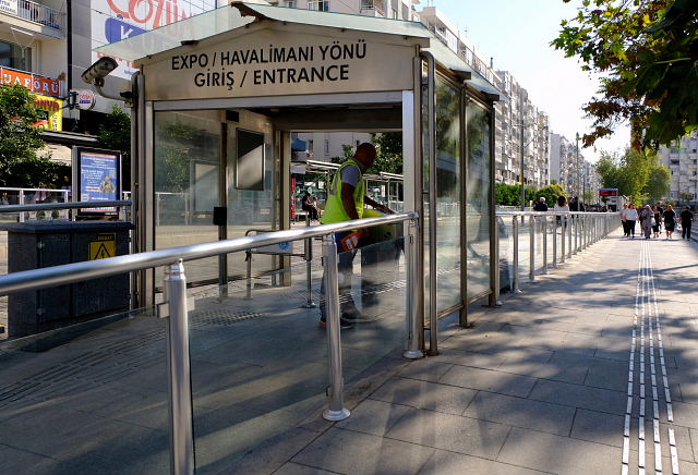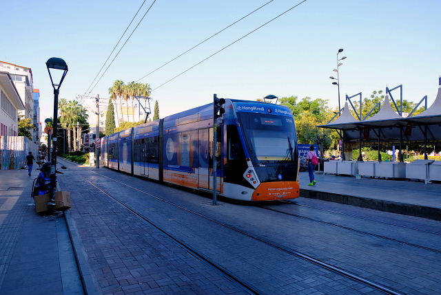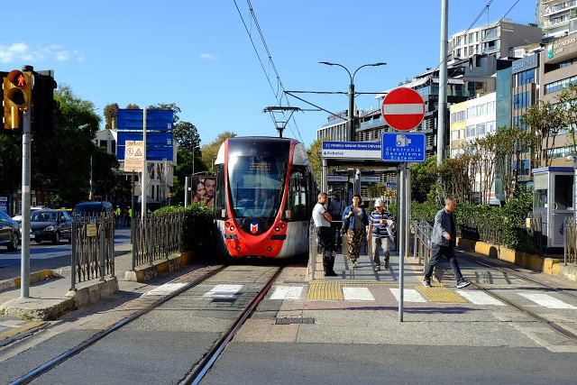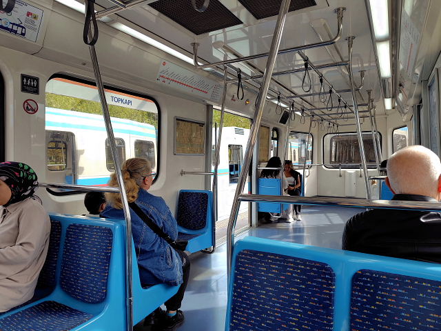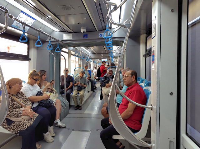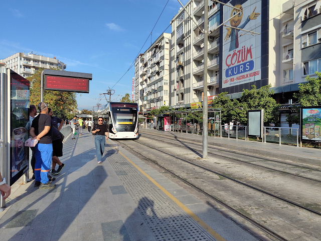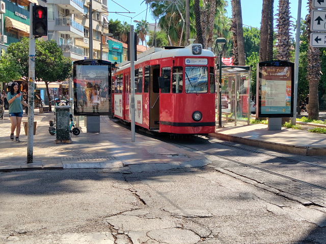 アンタルヤに近づいてくると海の景色もごく普通になってきた。アンタルヤ・オトガル着2時前、カシュから4時間半かかった。外の気温は大阪の夏。ここから市内まではトラムに乗り換え。トラム駅まではトンネルを通っていく。途中にトイレがないかと見ていたがなかった。トルコの駅じゃないのかな。トラムはクレジットカードのタッチでOK。電車はノンビリ走ってるように見えるけど渋滞がないから気分的に楽だ。一番ホテルに近いBurhanettin Onat駅で下車。
