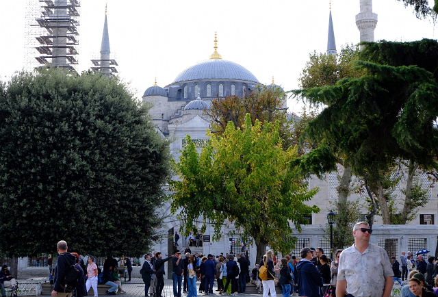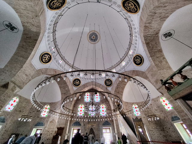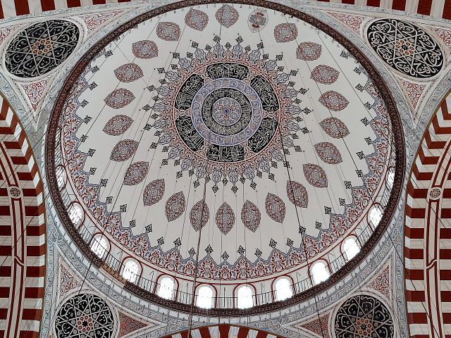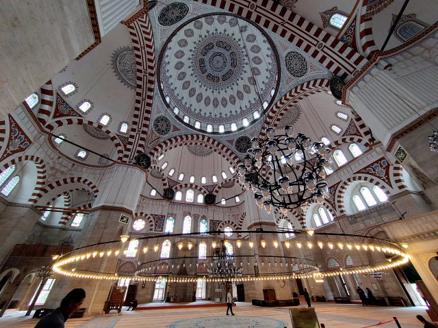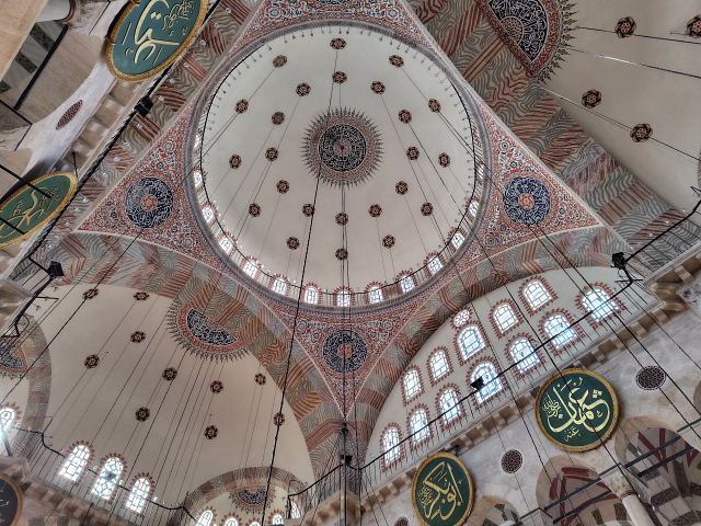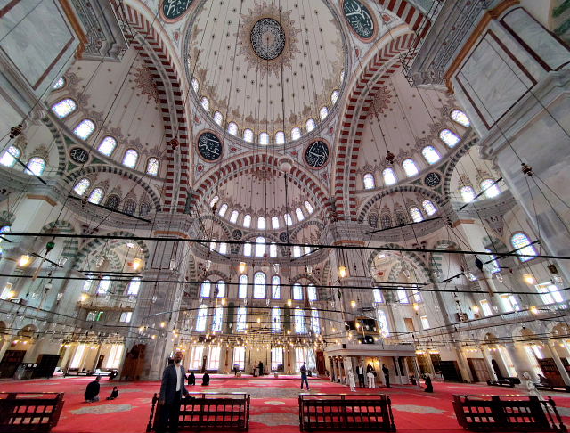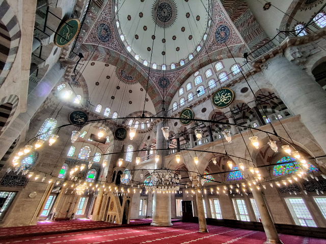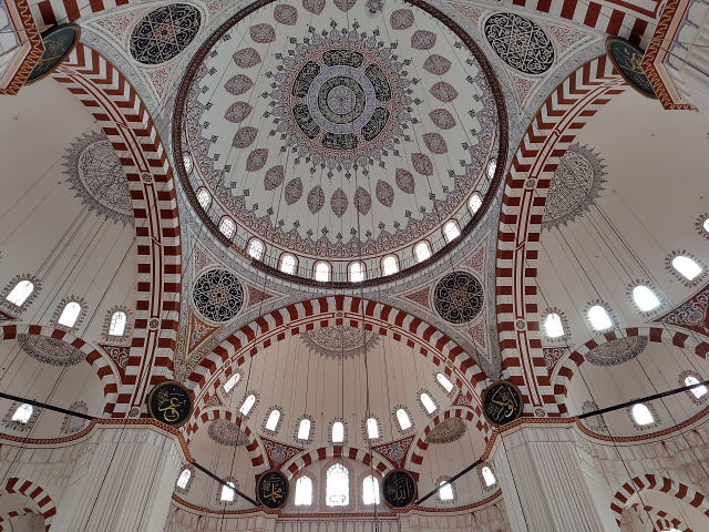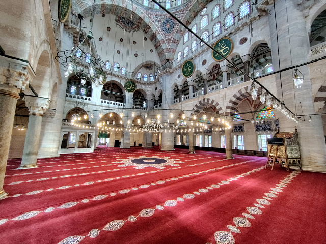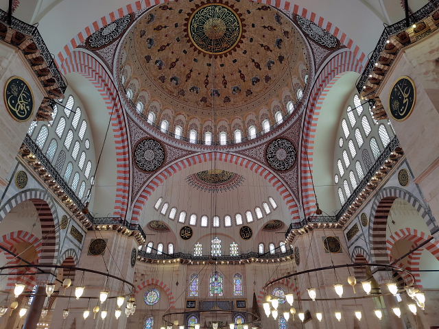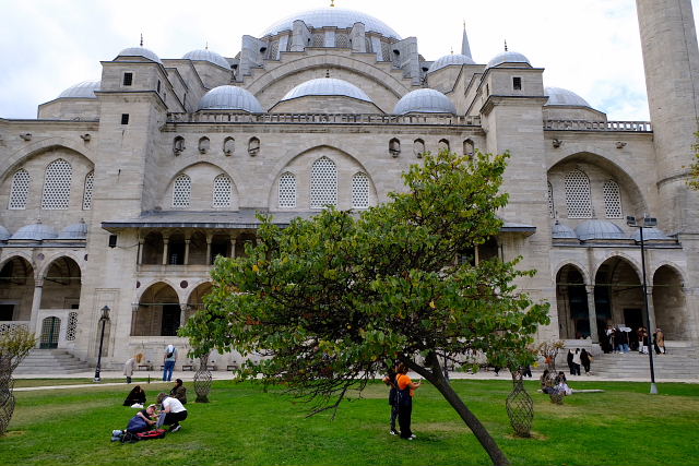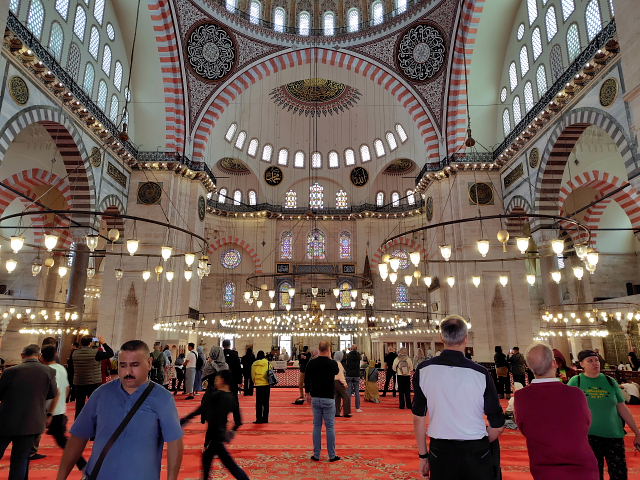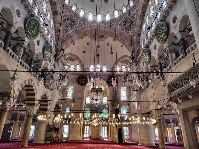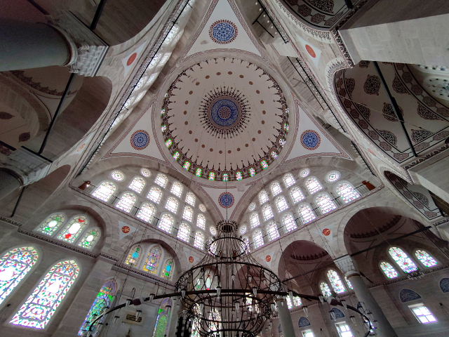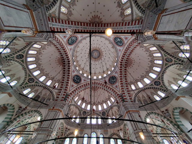 次は少し離れた Fatih Camii(ファティ・モスク)。下り坂で歩くのは楽。このモスクも際立っている。周りは公園で緑豊か。中は……どんなんだったかな三つ目となると段々感覚が鈍ってきた。どこもイスラム特有の幾何学模様。仏さんでもいたら顔立ちを覚えられるんだが。