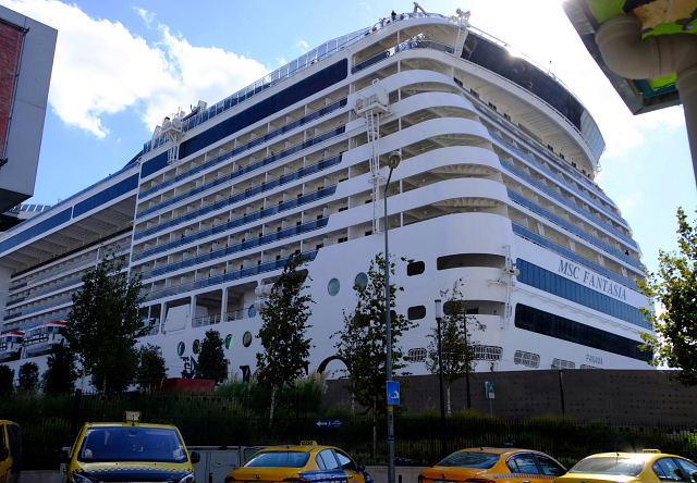 今日2番目のモスク、Kılıç Ali Paşa Camii(クルチュ・アリ・パシャ・モスク)は入れた。赤い絨毯が敷かれ誰もいなかった。イイ雰囲気だなあ。巨大なクルーズ船はイスタンブール現代美術館前に停泊していた。もっと近づいて写したかったが美術館は有料なので外から見るだけ。帰ってからこの船を調べるとMSCグループが所有しているMSC FANTASIA(137,936 トン)、前の方に停まってたのはMSC Explora 1(63,900トン)、大きさが倍違うんだ。こんな大きなクルーズ船が至近距離で停まって大丈夫なんかな。