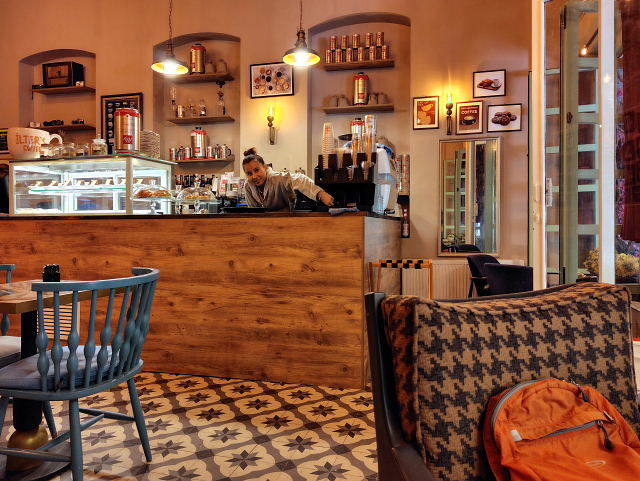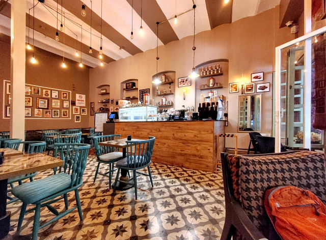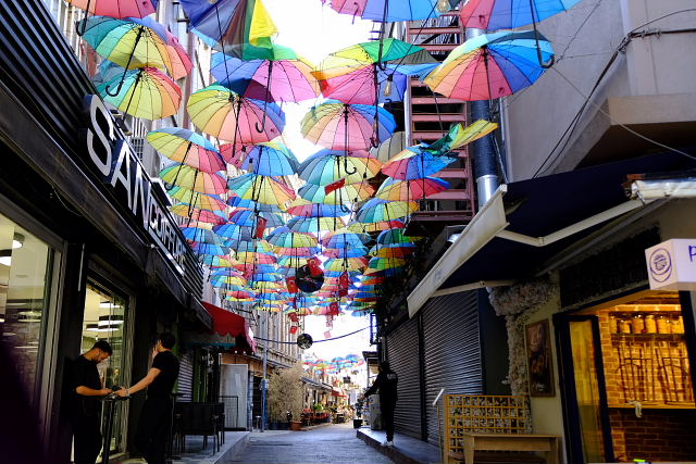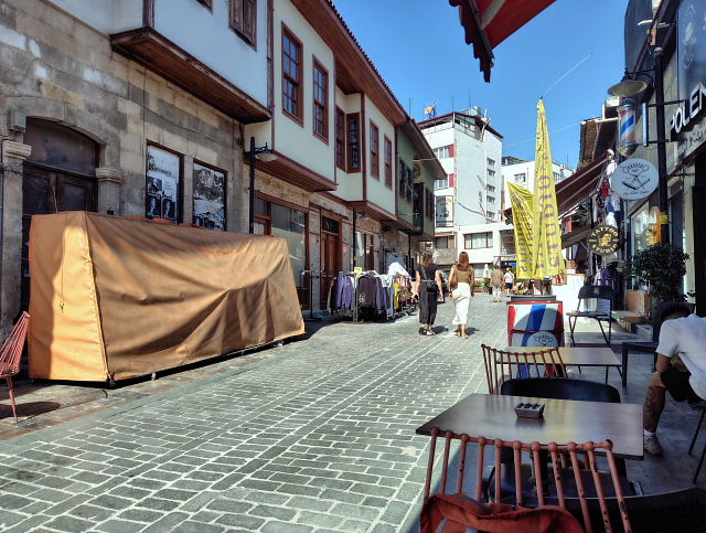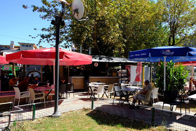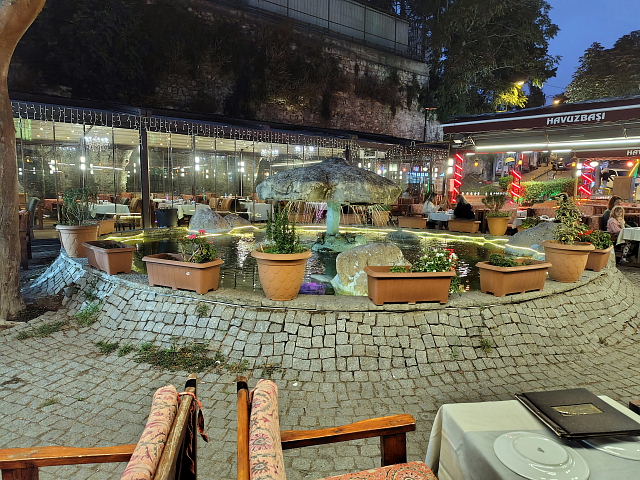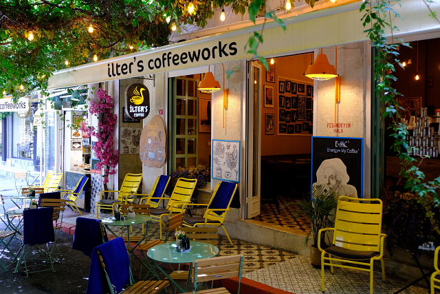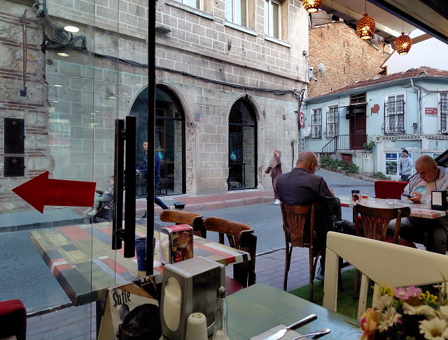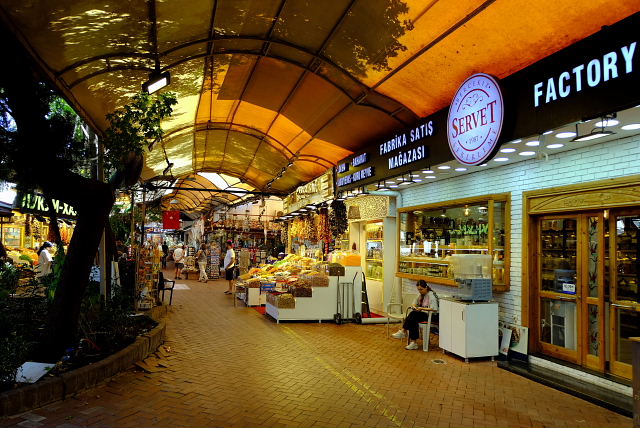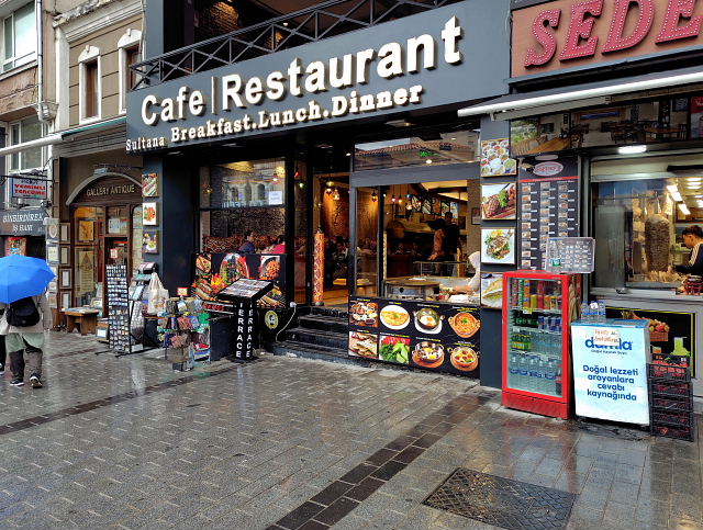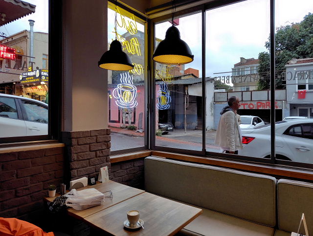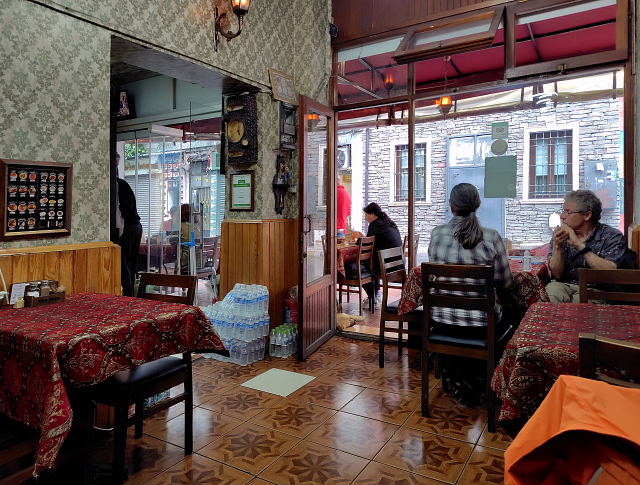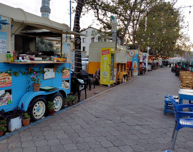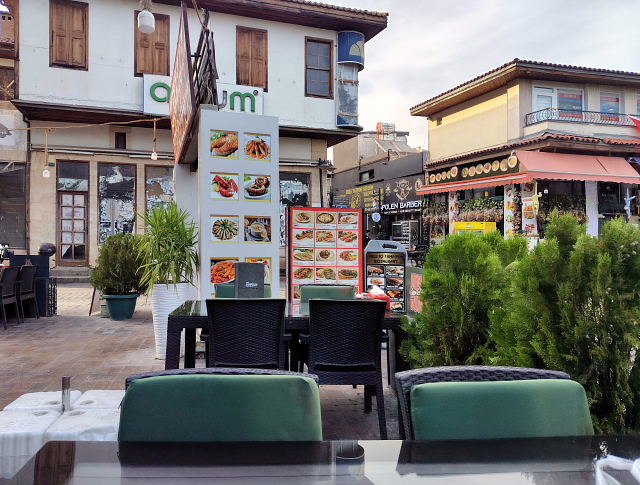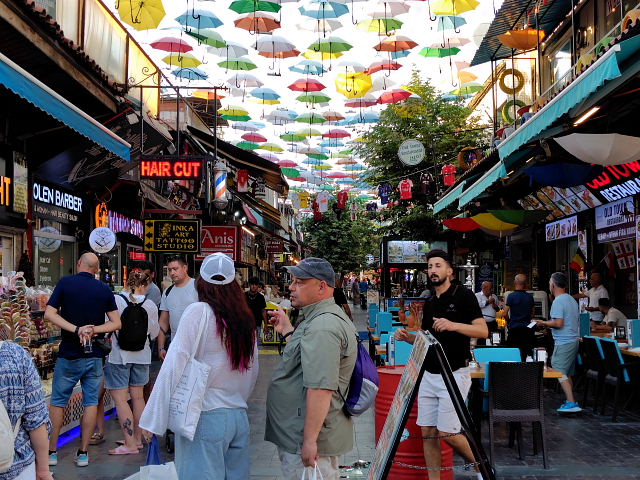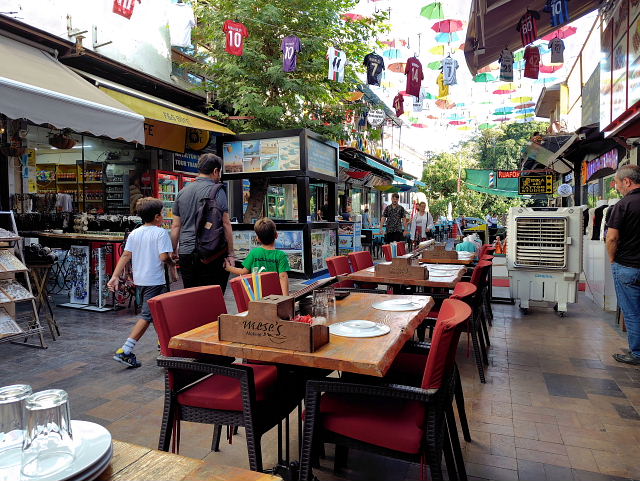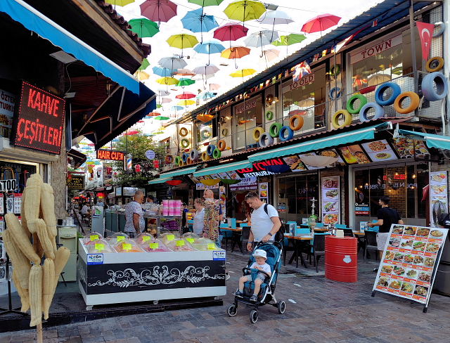 グーグル地図に載っているモスクでも補修中で閉まってる所が多い。海側の街中に入るとレストランが軒を連ねていた。歩道上を傘で飾ったUmbrella Street手前のカフェ、ilter's coffeeworks でお茶休憩。ターキッシュコーヒーとお菓子(160TL)。トルコではアイス・ラテなんていう奴よりターキッシュコーヒー、チャイが合う、値段も安いし。通沿いの席でマッタリお茶するのもいい。ネットにも出てないこんな店は観光客が入ってこない。外人観光客はネット情報に頼りきりで自分で店を探そうとしないから。昨日夕食を食べたロカンタも地元の人ばかりだった。