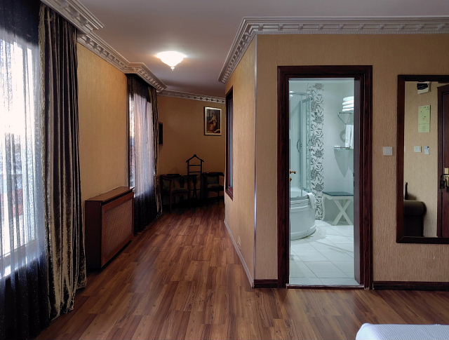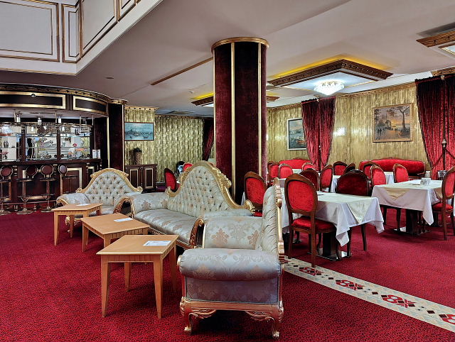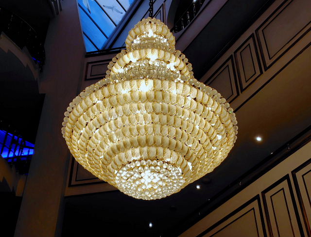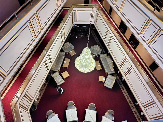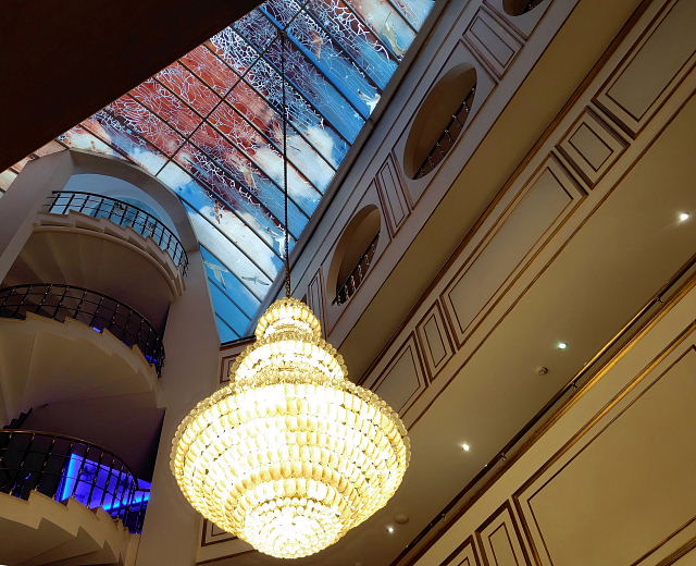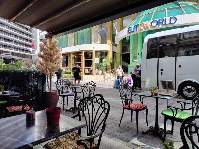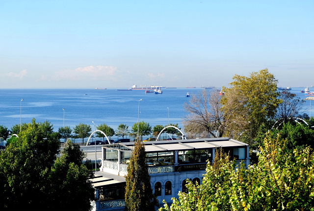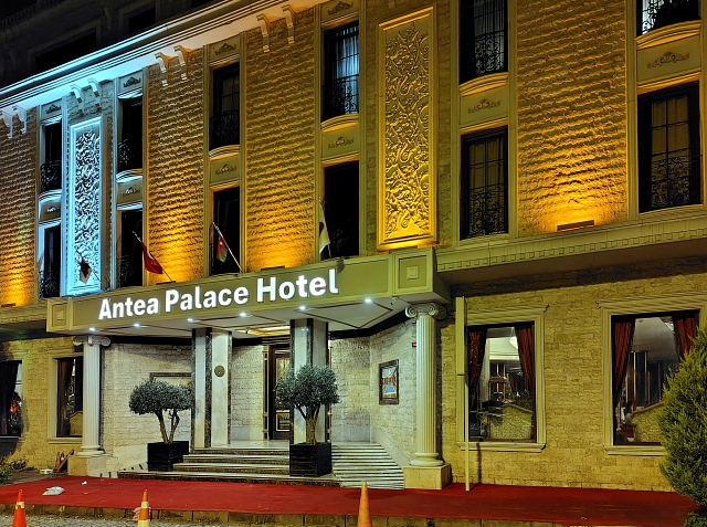 今日から3泊する Antea Palace Hotel に着いたのは5時40分、長い1日だった。ホテルは由緒ある佇まい、内装も凝っていた。エレベーターがアンティーク、一人乗りで手で開け閉めするタイプ。こんなのに乗ったのは始めて。朝食処は上まで吹き抜けの広間。このホテルはスパ(ハマーム)併設。313号室、ネットの写真とは違い地味な色合い。窓の外にはマルマラ海が見えている。ジェットバス付、バスタオル4枚、バスローブあり。コンセントはやはりCタイプ。フリーWiFiはパスワードなしで繋がった。居間用のソファベッドが置いてある。4人家族でもOKの広さだ。夕食を食べに出る時にフロントでコンバータープラグを聞くとすぐに合うプラグを出してくれた。このホテルはいろんな国からきているんだ。