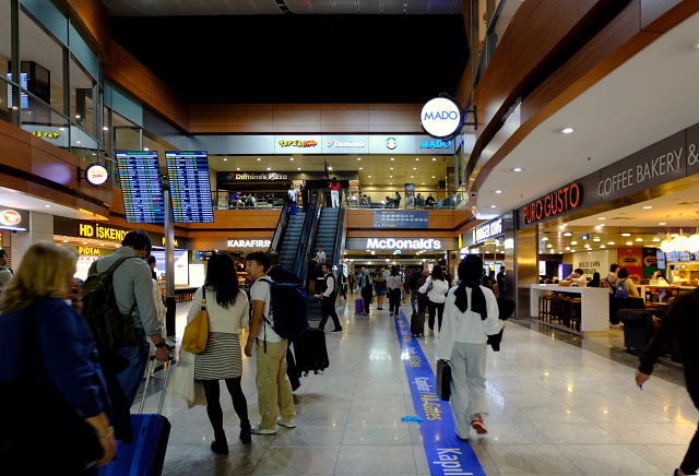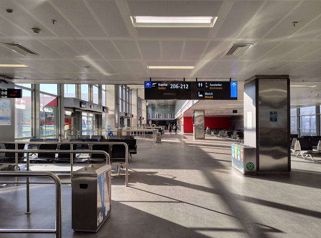 ドグガラジまで約20分。来た時はもう一つ先の駅で降りてホテルまで歩いたが、こちらの方が街中で賑やか。1本スキップして次の列車にした。車内に停車駅の表示があって分かりやすい。アンタルヤ空港のトラム駅は2ヶ所ある。終点手前の駅が国内線乗り場に近いのでそこで降りた。トルコ航空の自動チェックインだが……変更があった所為か座席番号9Cがない。スタッフのオッチャンに聞くとやってくれた。座席は適当に選んだらイイみたい、ナンかアバウトだな。マア出来たから中へ。ここも国際空港なんだがごく普通の田舎空港でイスタンブールとは較べられない。