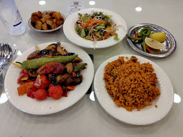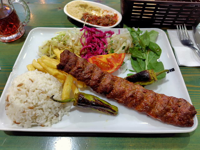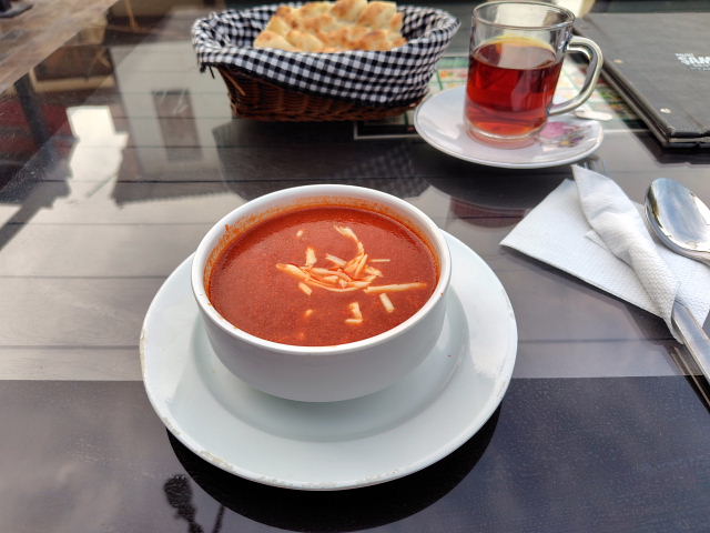 夕食は……この時間だから探し回るのはシンドイ。行き当たりバッタリで宿近くの Dimbil Restaurant 入った。スープ、アダナケバブ、チャイで520TL。味はイケる。食後隣のモスクSokullu Mehmet Paşa Camiiに行くと丁度お祈りの時間で参拝客がいっぱいいて中には入れなかった。
