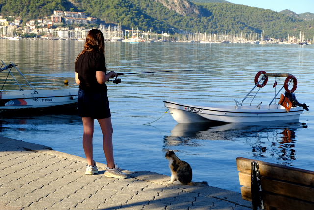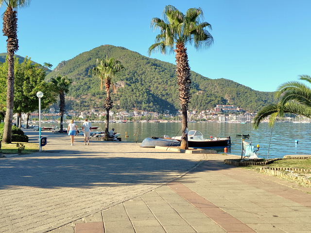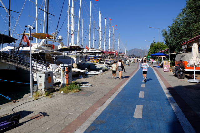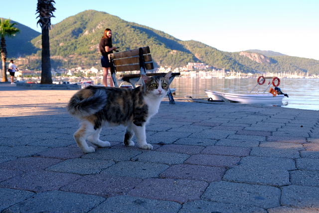 朝のフェティエ、海沿いの遊歩道はヒンヤリして気持ちイイ。入り江に停泊しているヨットは何艘あるんだろう。ここはアジアじゃなくヨーロッパなんだと思わせる風景。釣りをする人やジョギングしている人も多い。犬、猫たちもアチコチ彷徨いていて餌をやりに来る人もいる。熱帯じゃなくともブーゲンビリアの花を見ると落ちつく。
