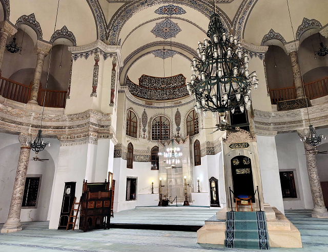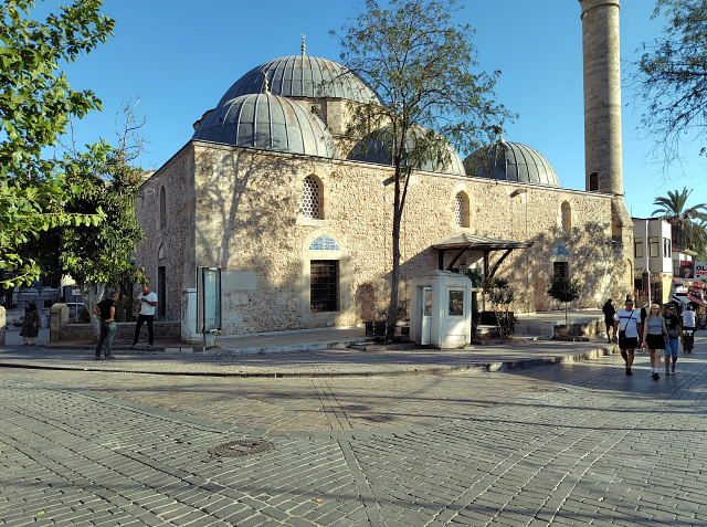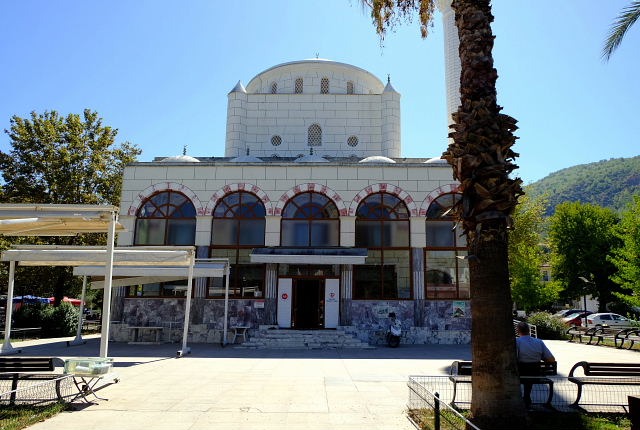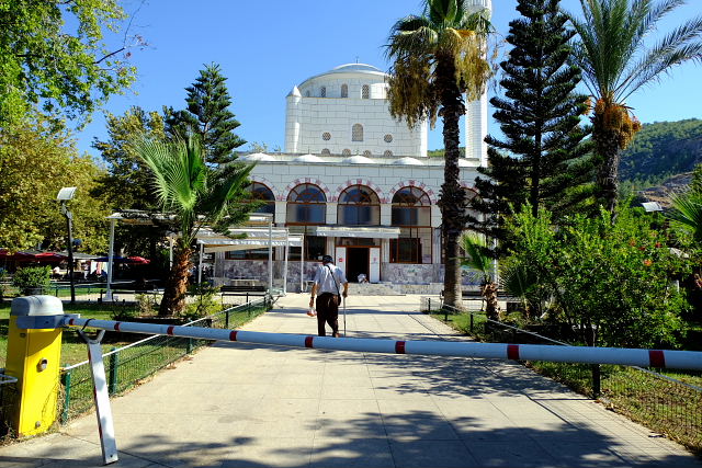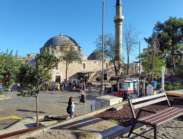 カシュ・オトガルには丁度2時間で着いた。ここはフェティエよりも小さいバス停。アンタルヤ行バスの時刻表(手書き)が出ていたので写しておいた。1時間に1~2本くらい出ている。明日はデムレで途中下車してミラ遺跡にも寄るつもりだったが段々気分が失せてきている。こんなバス停でトイレを探すのもシンドイ。すぐ上の方にモスク Kaş Merkez Cami が見えていたのでトイレ使用を兼ねて参拝した。モスク内を写すにはカメラよりもスマホで広角に変えた方が全部入写せる。旅行中一番気になるトイレ、タイではお寺、トルコではモスクか。