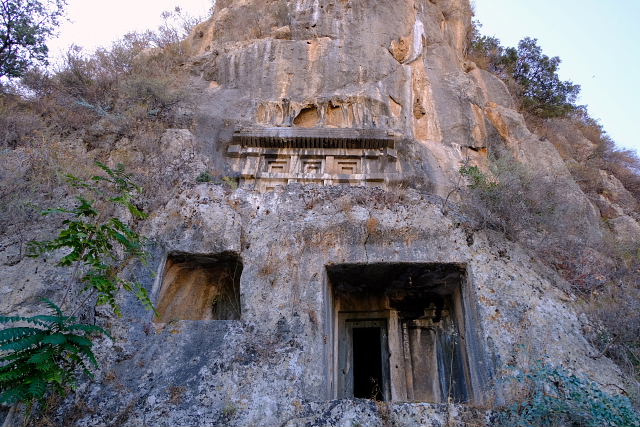 今日は市内散歩。そう広くもない街だからブラブラ歩きでいける。9時過ぎに宿を出た。津中のミグロスーパーでティッシュとインスタントコーヒーを買う。タイだったらこんな物絶対買わないだろう。始めは裏山に見える遺跡(お墓みたいな)から。ドルムシュステーション横から山道を登りすぐに岩窟に着いた。子供連れの夫婦が来ていた。その子が可愛いかったので梅ドロップ(のど飴)をあげたが口に合ったかな。この辺りの岩山には所々こんな岩窟が掘られていた。上の方に行くには有料、入場料5€……それだけ払って行く人がいるんかなあ。