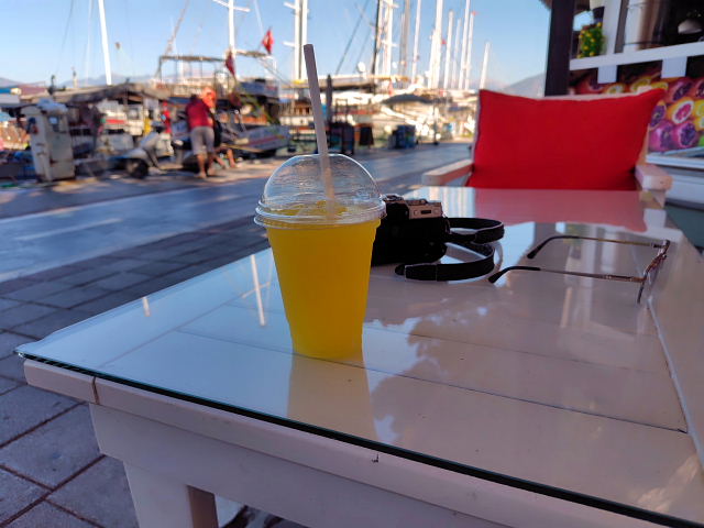 港のジュース屋台で始めてナルスユ(200TL)を飲む。味はさほど好みじゃないがトルコ名物を飲んでみたかった。観光地料金で割高。昼はナンか食べようとレストランを覗いたけど何処もバカ高い所ばかり。カシュはヨーロッパ系観光客の巣窟、そちらの感覚じゃ安いんだろう。まあどのレストランも見晴は良いし雰囲気も良さげ……味は分からん。やはり昼抜きでディナーだけにしよう。