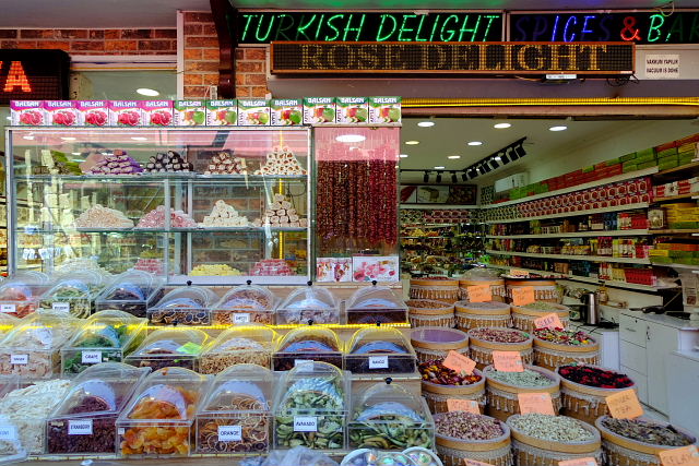 ヤッケ(ライトシャルジャケット)を羽織り外に出た。このヤッケは役に立っている。ブルーモスク、アヤソフィアは何時も観光客であふれている。今9時45分、9時半の空港バスは出た頃だと思ってバス停を見るとまだ乗り込んでいる所。今日は遅れてるんだな。明日はアクサライからの方がイイかな、迷ってしまう。スルタンアフメトからトラム沿いの道をシルケジまで下る。余中のロクム店を覗くと大きな切り売りロクムが1kgで750TLと昨夜店より安い。何種類か切って小箱(500g)に入れてもらった。それともう一つ小さいのとで計495TL。予定していたよりかなり安くなった。