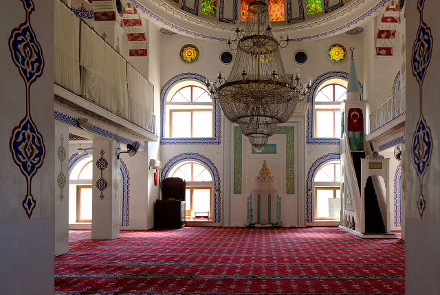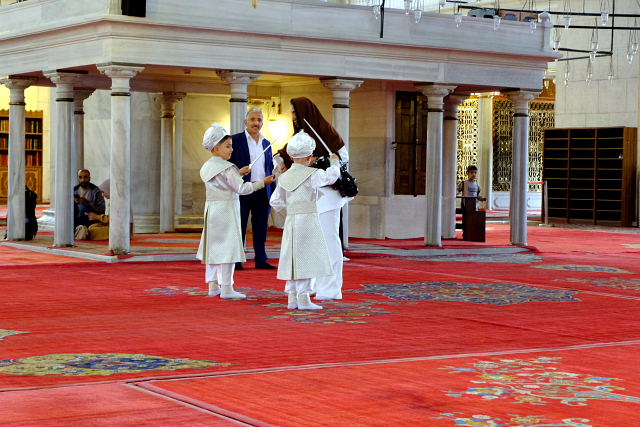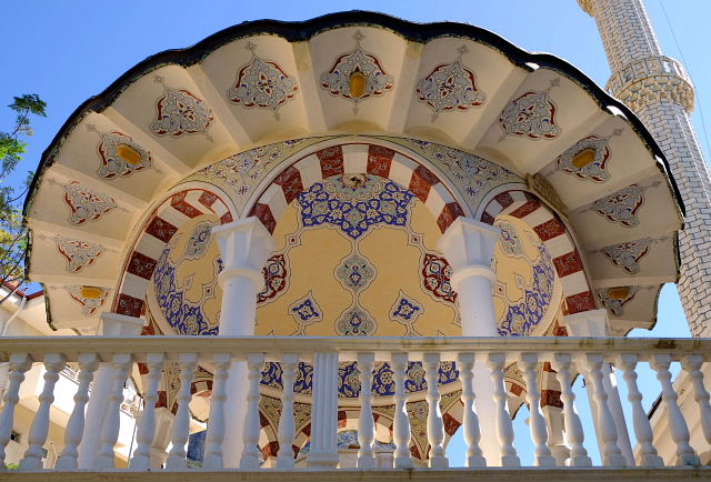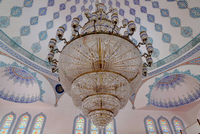 白いモスク Yeni Hamidiye Cami に入ってみた。赤模様の絨毯、白い壁、ステンドグラスが綺麗だったが何所もよく似た感じがする。モスク前の屋台でナルスユ(ザクロジュース)を注文したが、今切れてるとのことでチェリージュース(50TL)にした。さっきのレモネードより美味い。何日か滞在すると良い店も分かってくる。