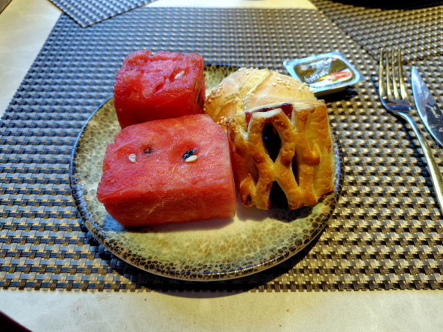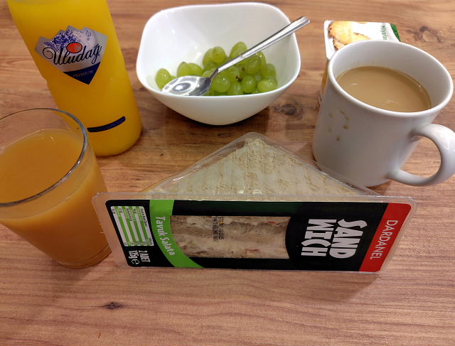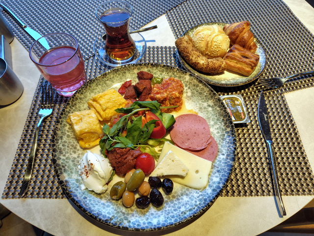荷物チェック(入口でもやったのに)して出発ホールに入る。お次はプライオリティパスがデジタル化して初めて入るプラザプレミアムラウンジ(2時間まで)。同じイスタンブールの空港ラウンジとはいえ、メインの空港と較べると格段に落ちるラウンジ。マア何処にも入らず時間潰しするよりはマシ程度。航空機が離着陸するのを見下ろす席にした。さて朝食は……食べる物は貧相で日本のラウンジ並みだがパンだけは美味しい。