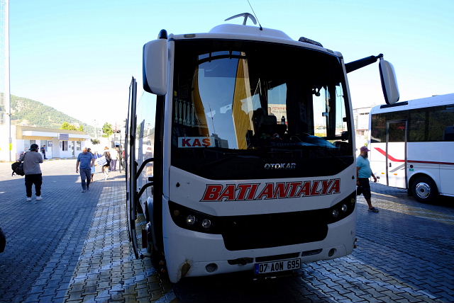 朝はヒンヤリした気候だがザックを背負って歩くと汗が滲んでくる。オトガルまで約30分。次のカシュ行バスは9時丁度発。ここはカードで支払った。座席指定で12番。でも後から乗ってきた人は中でチケットを買っていたから自由席なんだと思う。バス会社名はBATI ANTALYA、この界隈ではこの会社がメインみたい。ネットで検索するとキャミールコチが走ってると書いてあったが、隣にそのバスも停まっていた。