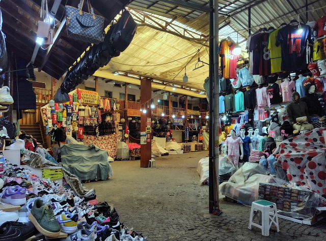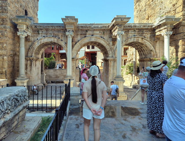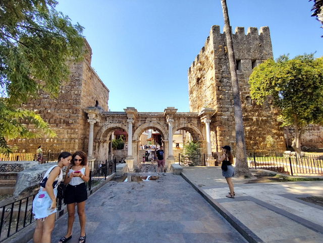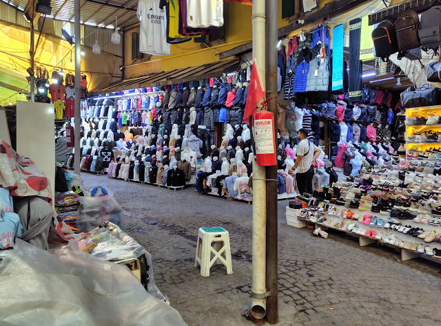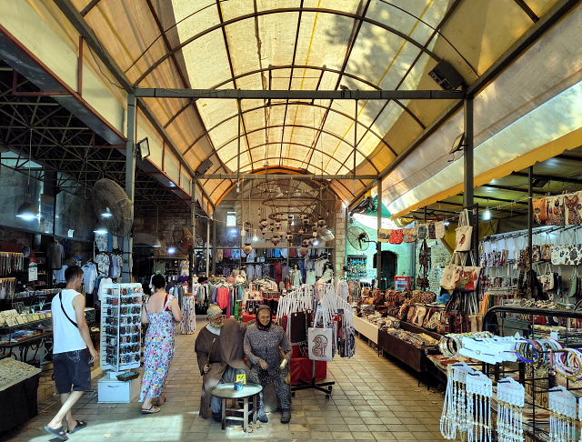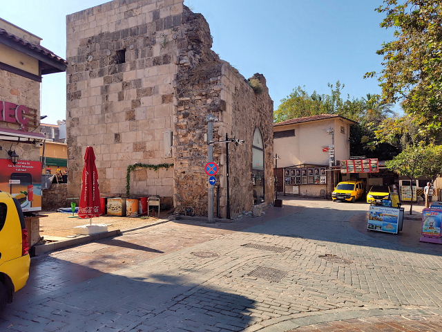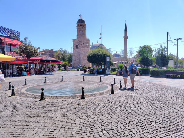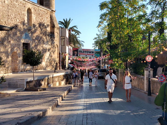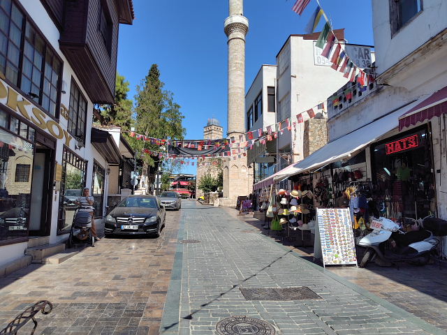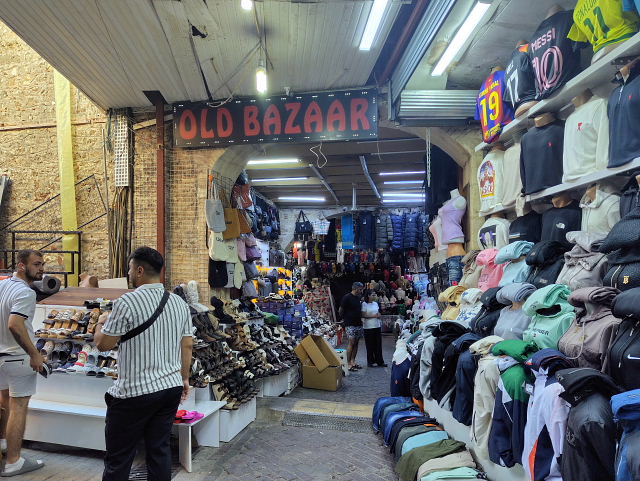 アンタルヤのビーチは市街地西方にある。トラムで終点まで行けばいい。ホテルを9時前に出て明日乗車するトラム駅を確認する。ビーチに向かうトラムはこれと違う線。モスク前の駅で待てど暮らせど電車が来ない。30分近く待っても来ない、止めとけということなんだ。じゃあ旧市街(カレイチ)見物にするか。横のオールドバザールに入ると衣類ばかりで完全に地元民向け市場。